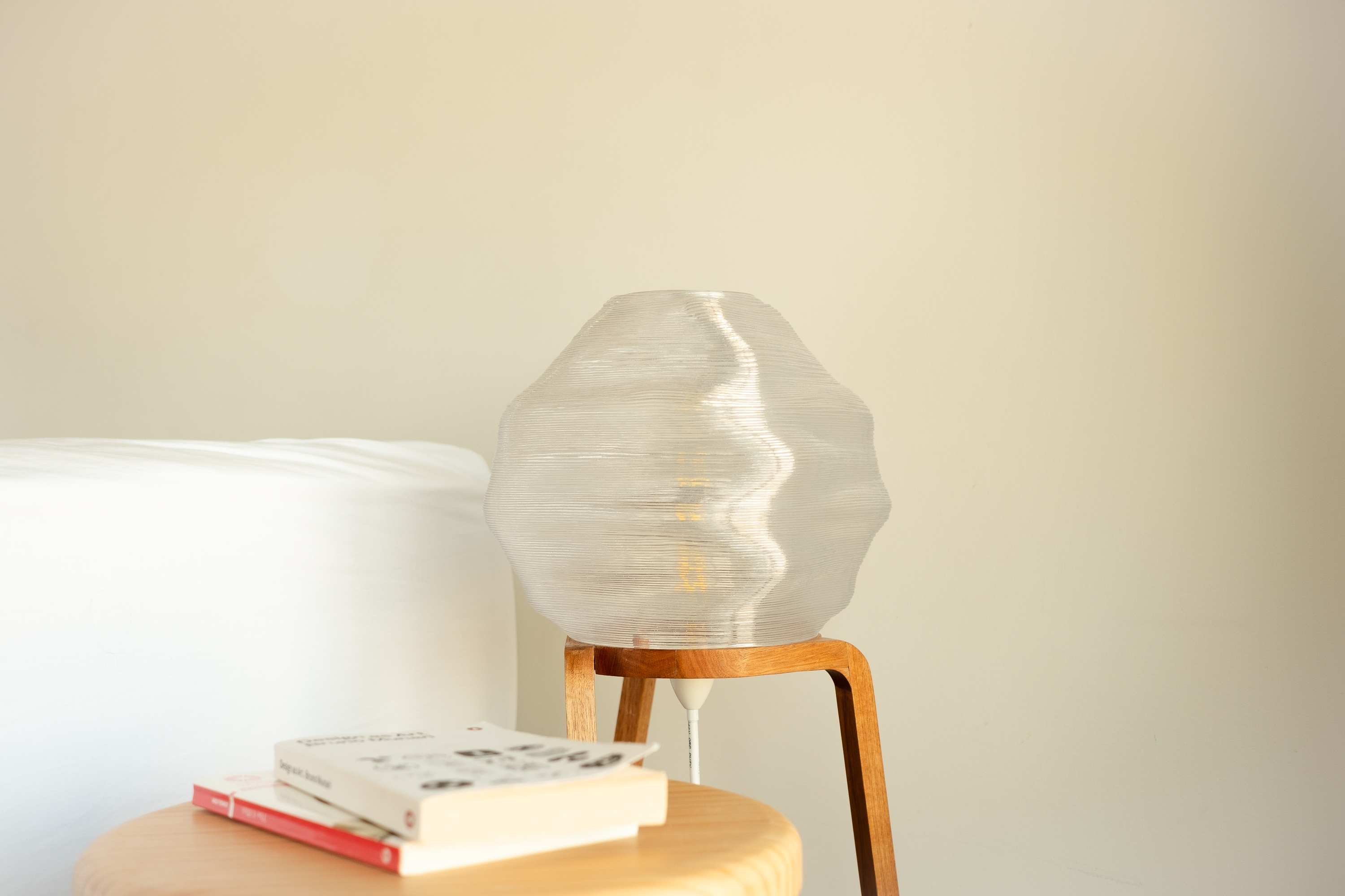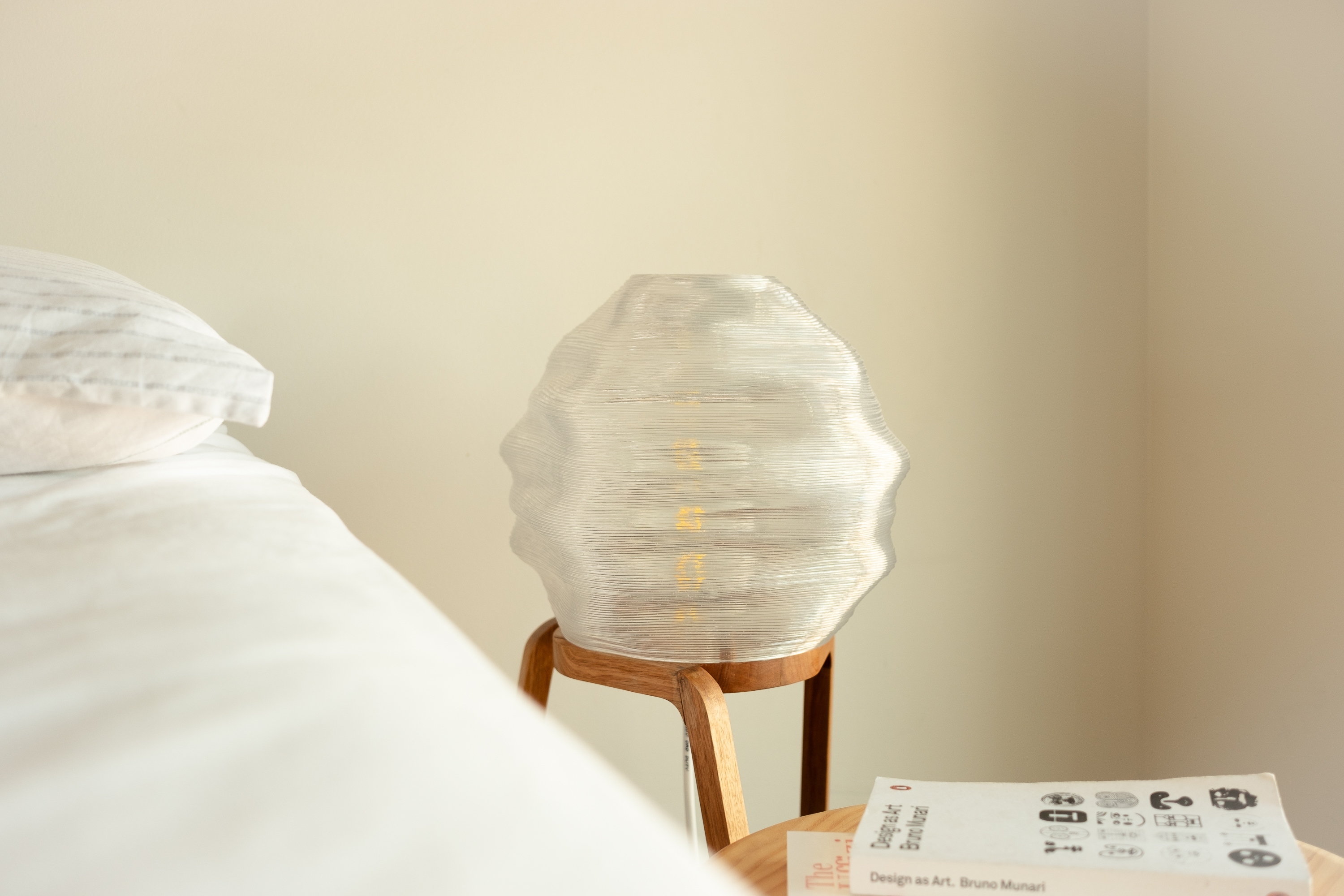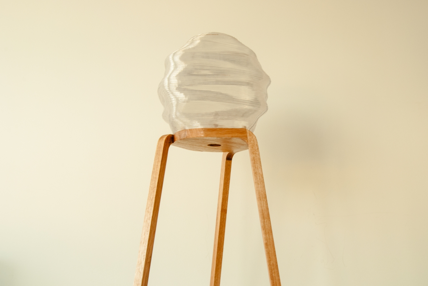 Sustainability ApproachThe lamp’s design gives careful consideration to its environmental impact, resulting in a product that minimises environmental harm while extending its lifespan and functionality. The light diffuser is 3D printed in rPETG, an environmentally friendly material created by recycling the manufacturing waste of PETG products. The stand is constructed from reclaimed Tasmanian oak floorboards. These choices of materials remove the consumption of virgin material in manufacturing.