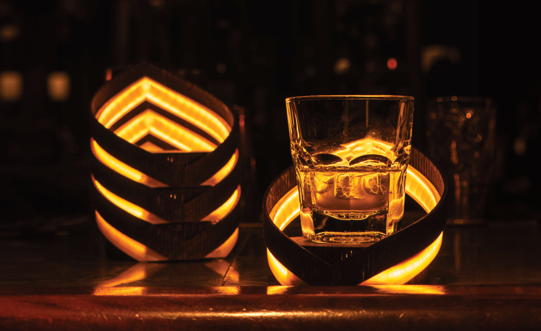 Aura is a 4 piece illuminated coaster set that can stack to become an ambient bar light, or be separated to hold your hand crafted cocktails. Aura was designed for high end cocktail bars, where sophistication and ambience play a critical role in the user journey and experience.