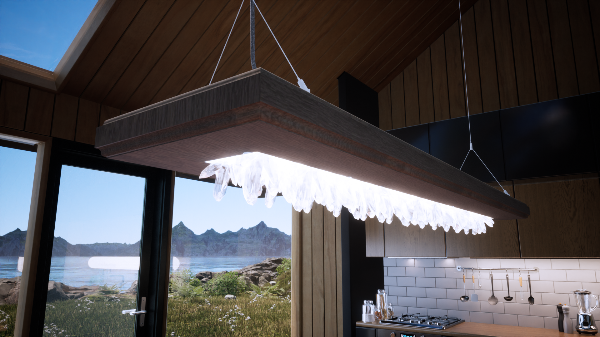 The lamp is made of metal, wood and mountain crystal and has been designed so that it can be easily converted or replaced. The absence of plastic and the use of sustainable materials ensures longevity and ease of maintenance. The combination of these materials gives the lamp an aesthetic touch and underlines its sustainability.
