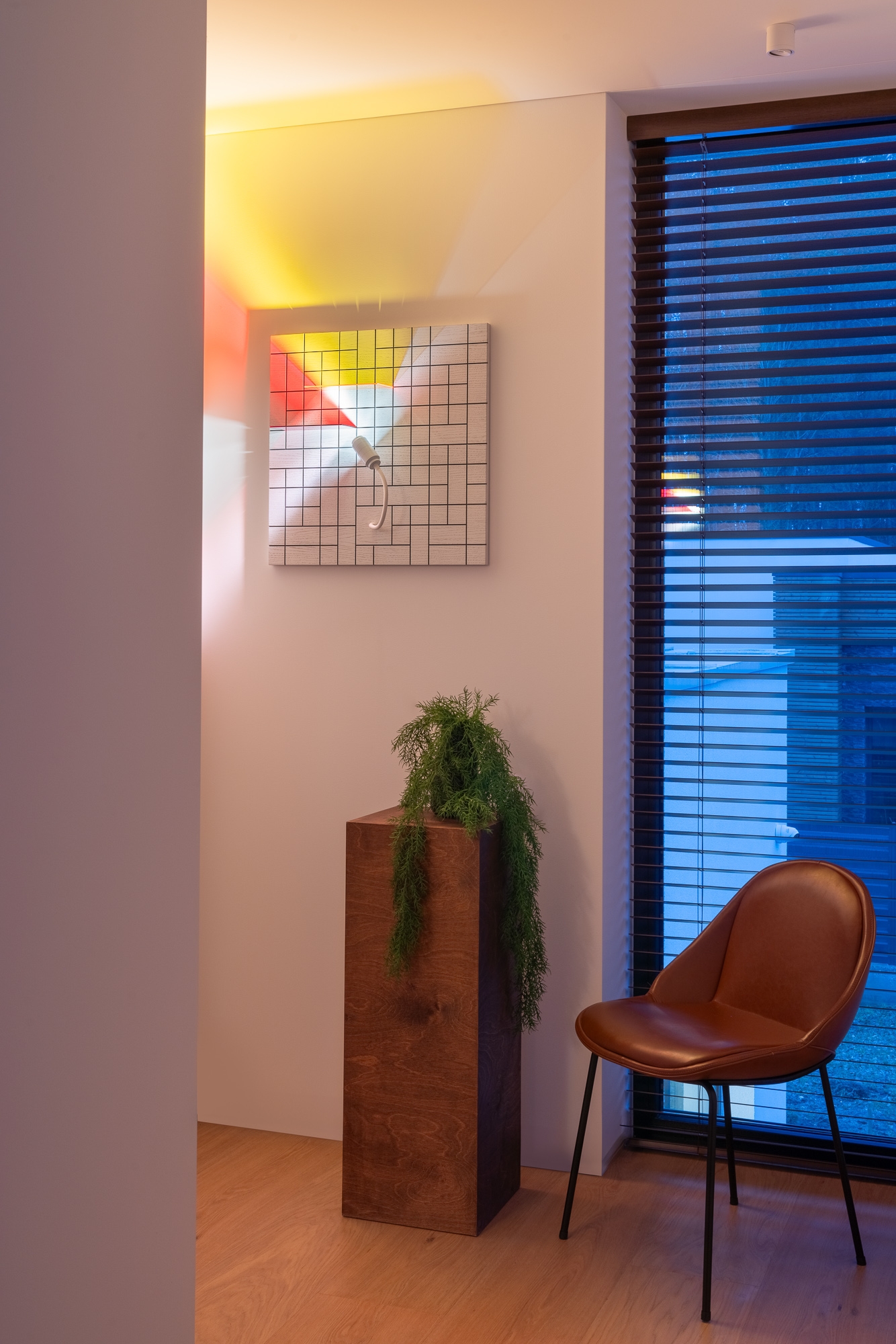 Entry DescriptionThe lighting composition 'MOOD' is one of two compositions, namely 'Mood' and 'Mini Mood'. The purpose and design principles of light compositions are similar; only their sizes and the compositions themselves differ. Primary goal in designing these lamps was to enable every interior owner to become an artist who can craft compositions of varying colors and shapes using light. This can be tailored to their mood or the day-night cycle. For example, cold shades might energize the body in the morning, while warm tones that mimic sunset could provide calm and relaxation in the evening. The purpose of these light compositions is to create a unique and flexible experience, allowing everyone to tailor their own space according to their inner emotions and biological rhythms. Also, to add more colors to interiors by changing dominant and complementary colors as desired. While the lamp maintains a minimalist appearance during the day, it transforms when lit, with colors emerging and altering the visual size of the lamp. This enables the creation of numerous unique light compositions by adjusting the positions of the light source or the plexiglass inserts. These light compositions were created as master's theses.