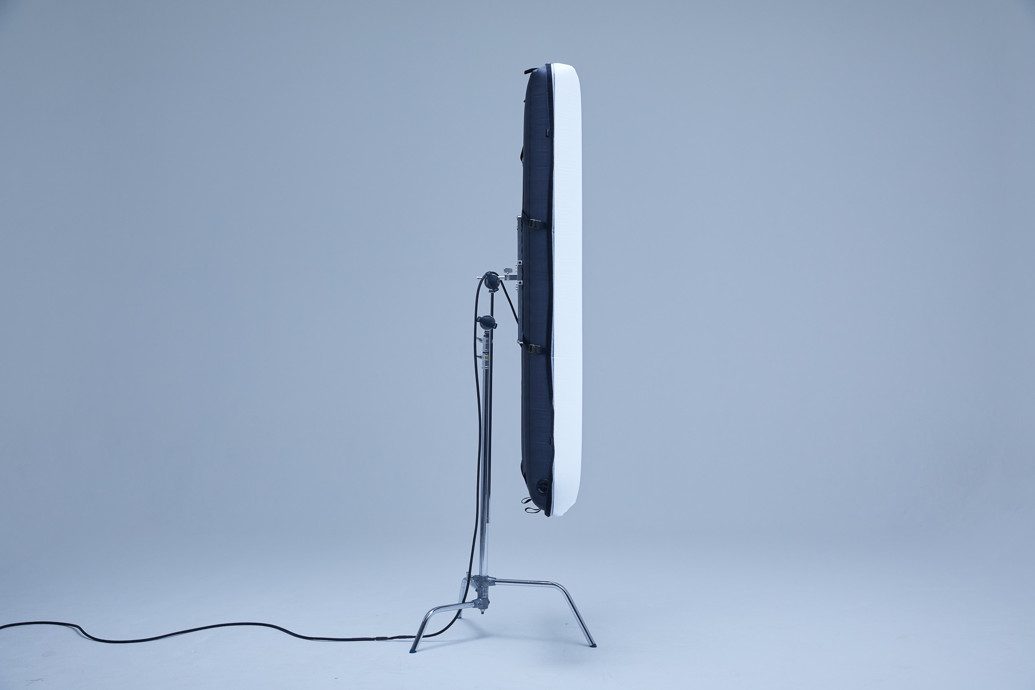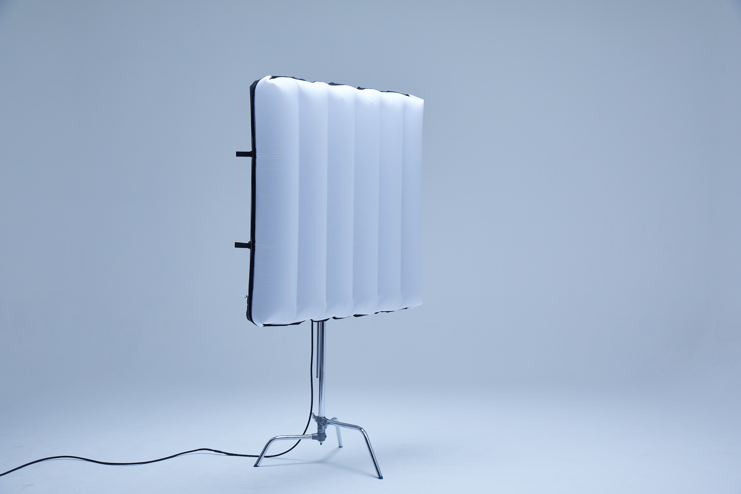 Entry DescriptionHaving worked on film shoots in the lighting department, we have seen a variety of lighting challenges on set that have been solved with a number of very different light sources, diffusers, and support devices. These solutions are interdependent and often cumbersome and require additional support systems, bulky transportation, a lot of crew members and plenty of installation time. That's why we came up with a device that solves a number of basic problems in lighting on film sets. The shape and rigidity of our products are provided with air inside the shell. As a result, the soft shell becomes the supporting structure for the light source - LED stripes inside of the device. The white part of the shell is an effective diffuser - essentially an integrated soft box - for the built-in light source. And the distribution of light sources inside of the shell and the volume of air ensure uniform and sufficient heat dissipation, thus eliminating the need for heavy radiators and/or fans.