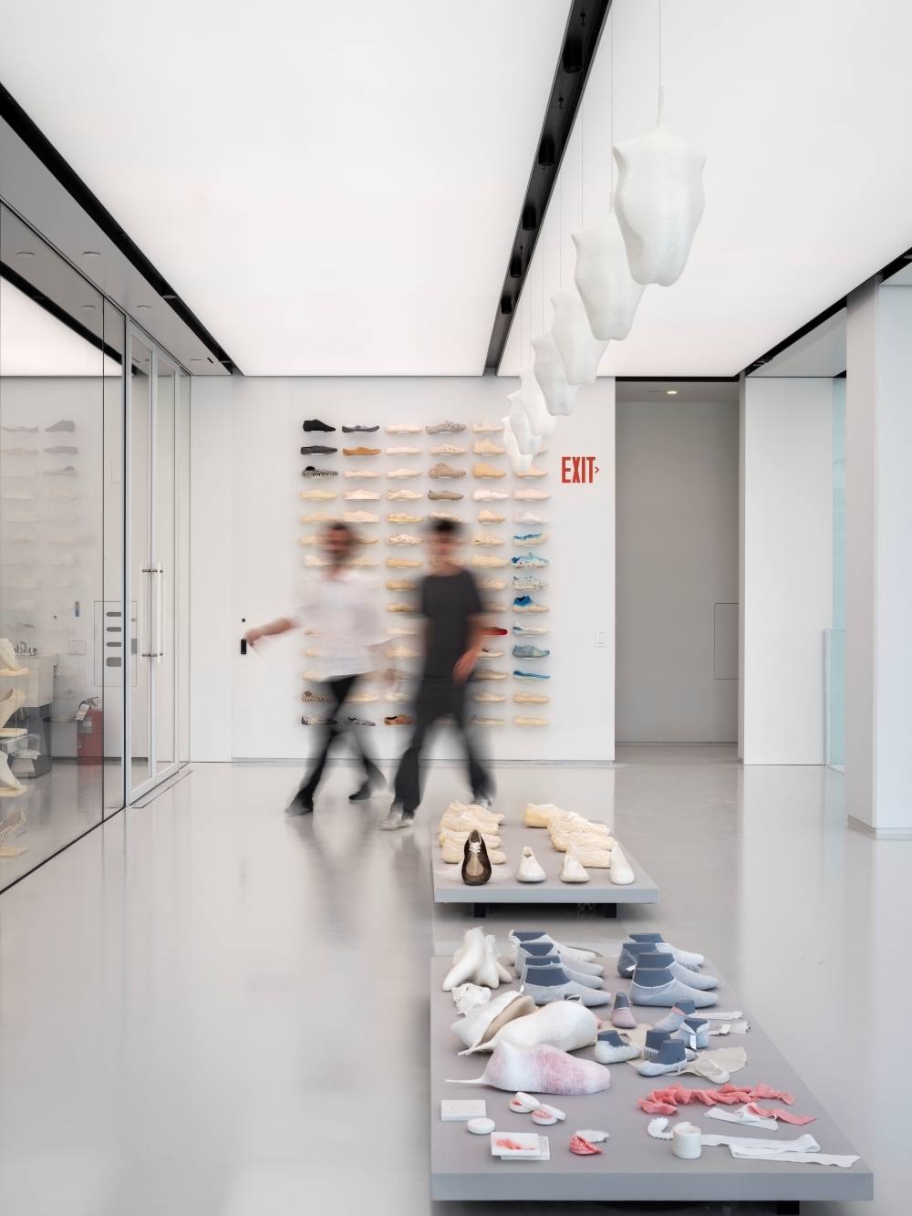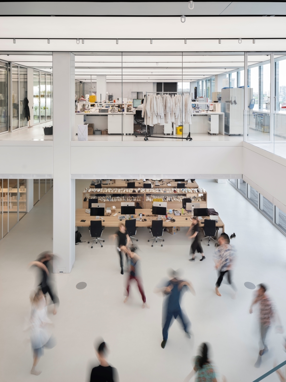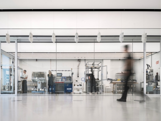 Sustainability ApproachThe project is designed to meet NYCECC 2020 standards, featuring dimmable LED fixtures with daylight, vacancy, and occupancy sensors to ensure optimal lighting only when needed. In the evening, lighting transitions to a warmer CCT, in response to workers circadian rhythms, while minimizing output from the tunable white dual-chip channel system. All enclosed offices are activated by switch and deactivated by vacancy sensors. The shelf lighting is controlled by a jam switch, conserving energy when the doors are closed. The workspace uplighting and luminous ceilings in the lab areas are designed to meet specific light level requirements for laboratory use without excessive illumination. A timeclock system turns off the entire studio after hours, with individual spaces reactivated only by manual switch or occupancy sensors when appropriate.