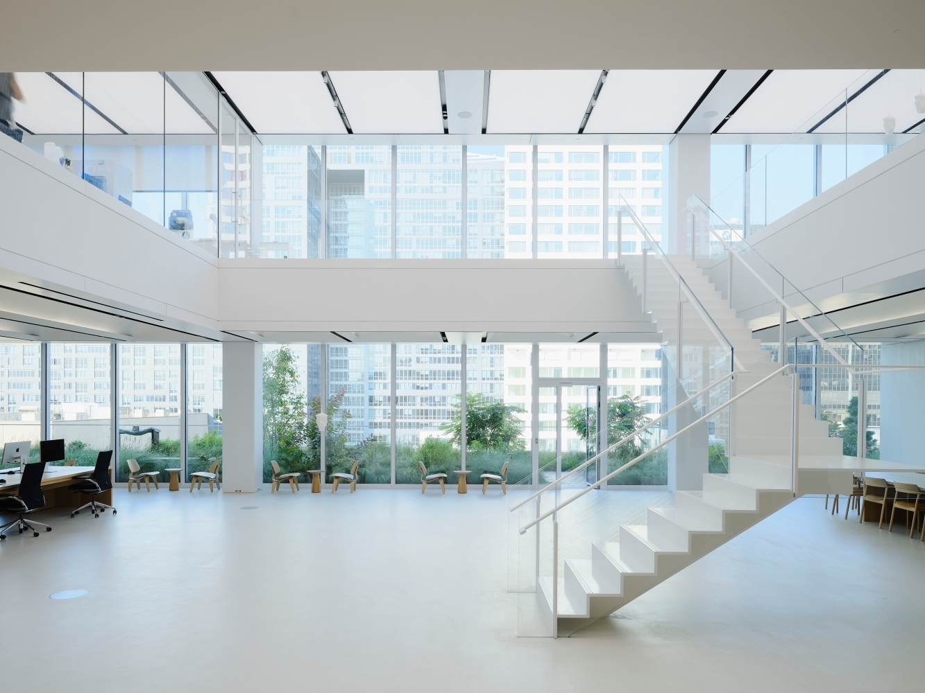 Entry DescriptionThe lighting concept for this 2-story office space evokes a sense of calm and tranquility. The refined design supports each area’s diverse function while ensuring smooth transitions between spaces from day to night. In the north-facing space, tunable white fixtures on both levels were programmed to display a CCT curve reflecting the quality of natural light, allowing for a seamless visual shift from indoor to outdoor. In the atrium, light intensity and CCT of the backlit upper ceiling is carefully balanced with the barrel vaults below. Trackheads in reveals provide flexibility for events.