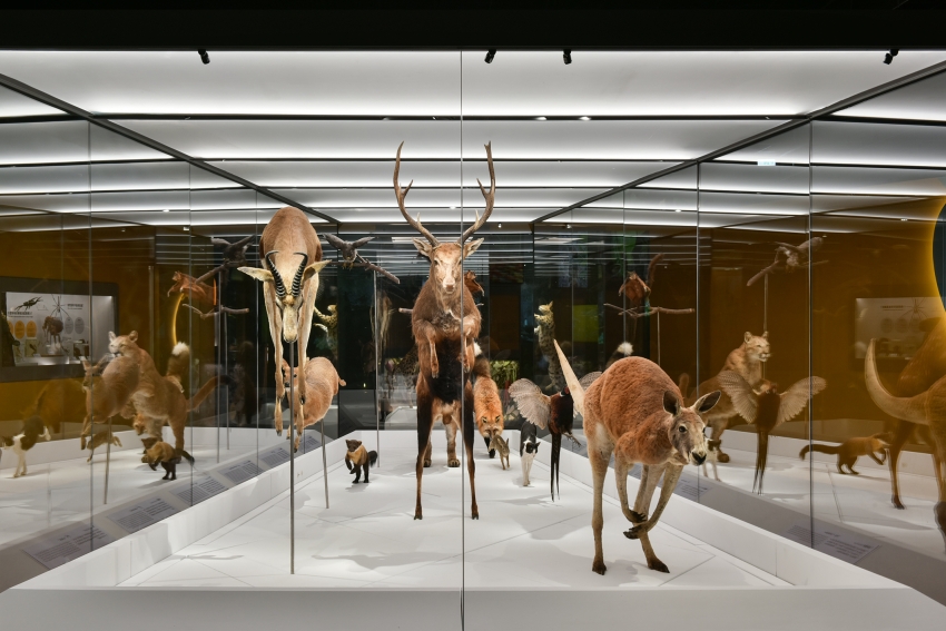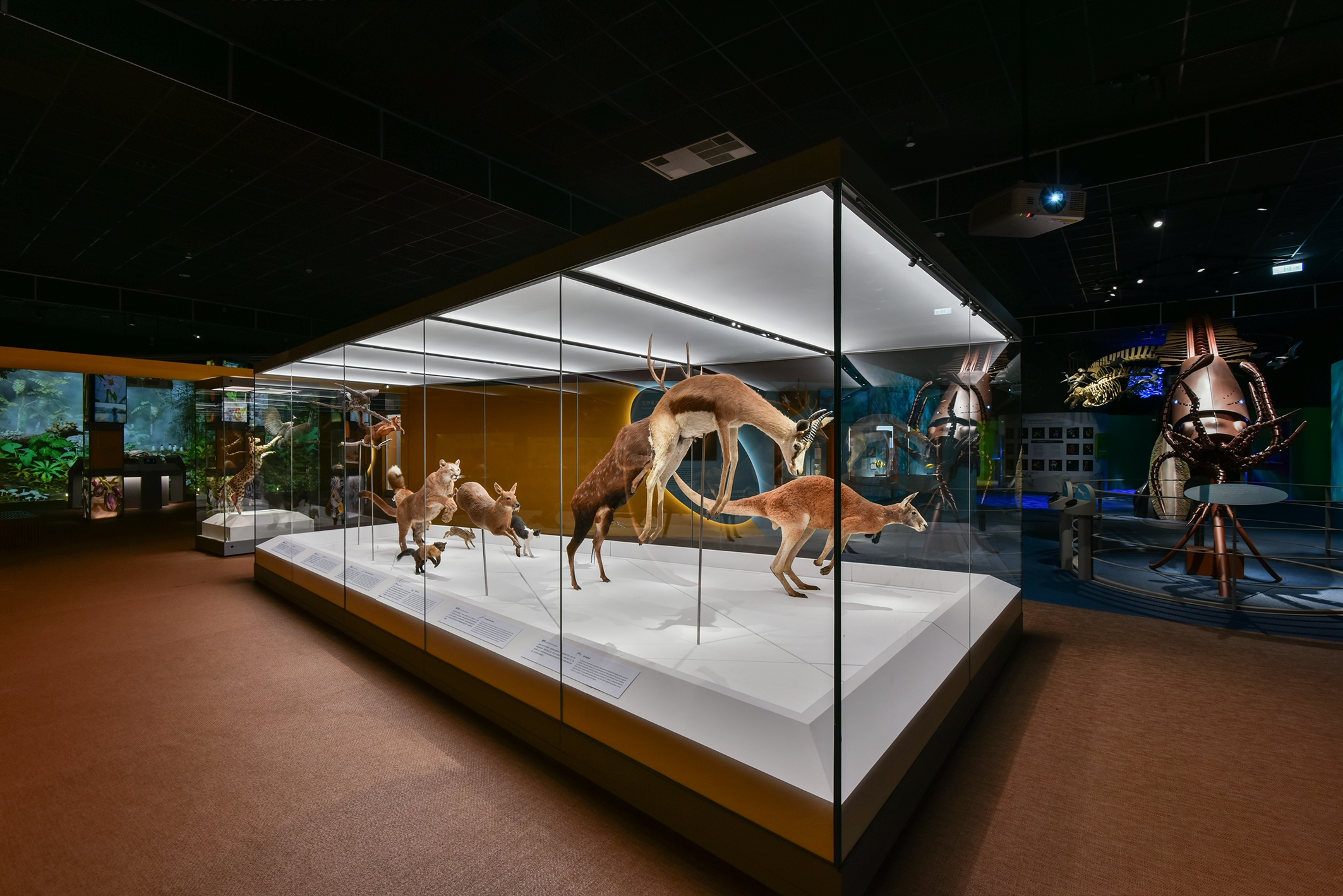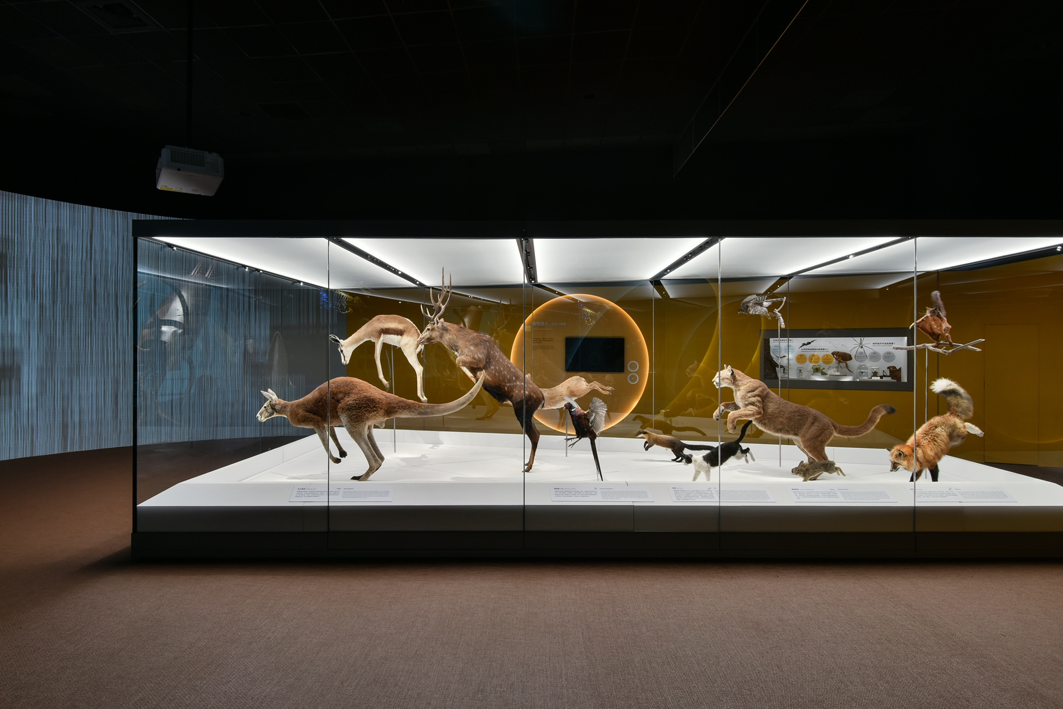 The lighting design concept is to create illuminated display cases that highlights the characteristics of animal specimens and models. Using 4000K led strip to create illuminated panel above the showcases provides uniform lighting for displaying specimens, presented like they were under natural daylight. In addition, 36 degree lights are to emphasize specimens’ expressions and postures, and 12 degree lights are to accent feather and fur details of specimens. This way it creates abundant lighting layers for display cases, so the illuminated display cases can become the focal point of the exhibition space.