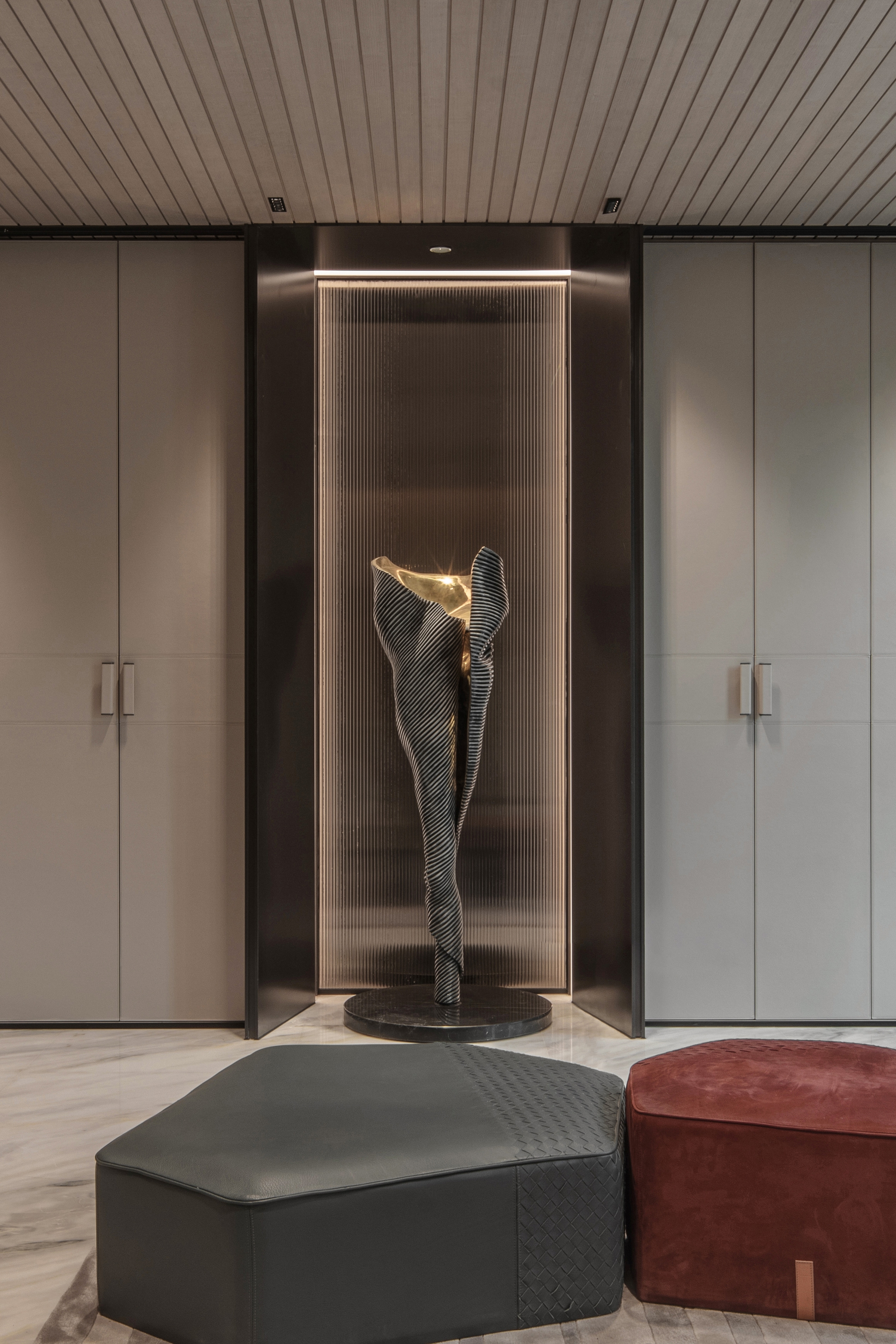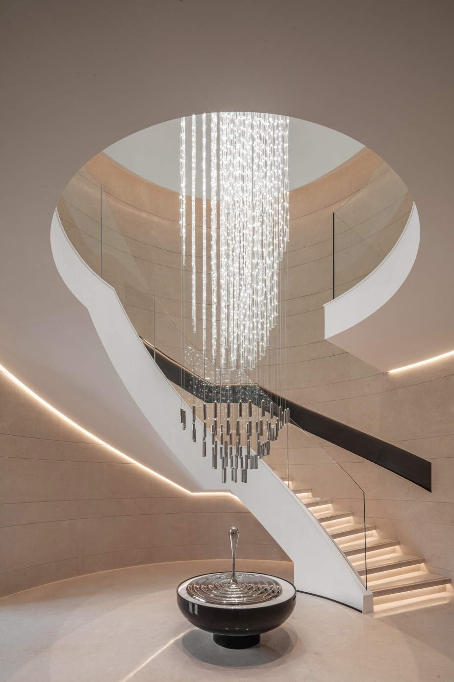 Inspired by the beauty of nature, water droplet art installations symbolize the flow of life, bringing vitality to the space. The lighting design in the corridors and underground barbecue room employs streamlined, concealed lighting fixtures to create a dynamic and intimate environment, making each space vibrant and full of life.