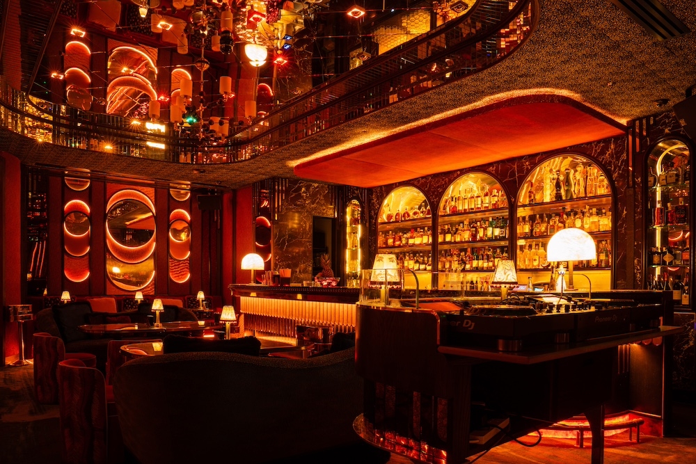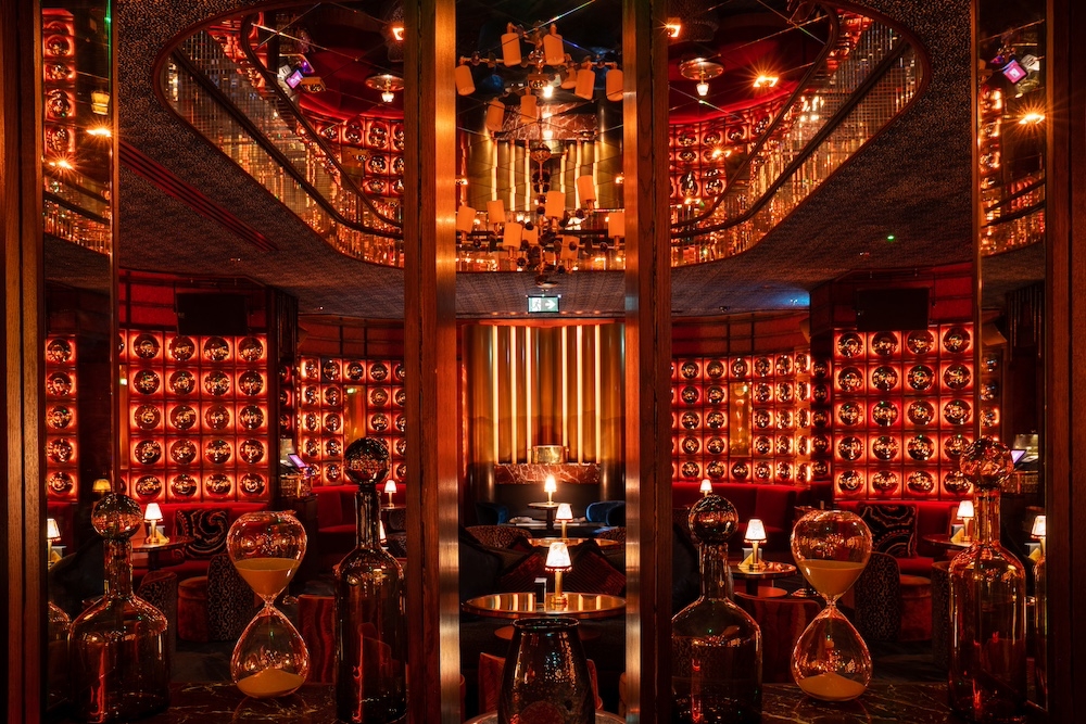 NYX takes its name from the Greek goddess of the night and is tucked away within GAIA restaurant in Mayfair, London. With elegant wing and feather motifs adorning the bar and an eye-catching lighting display, this private lounge seamlessly transforms into a sophisticated late-night club. The space exudes luxury through its rich colors, textures, and refined finishes. Dynamic lighting enhances the ambiance, adjusting to the music when the DJ takes over, creating an immersive experience.