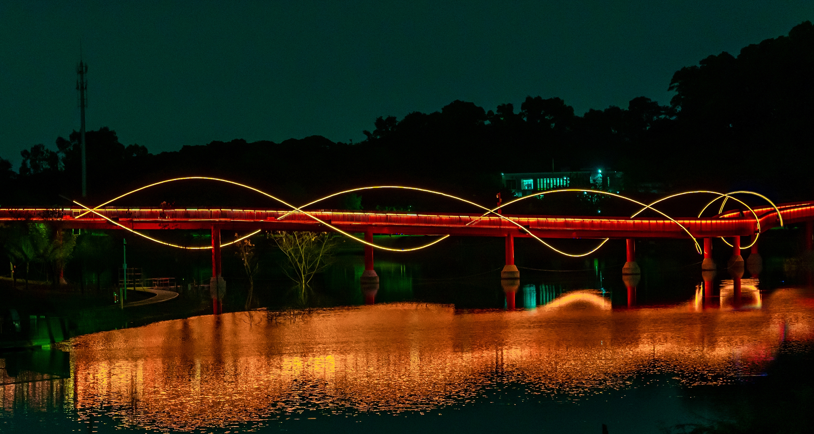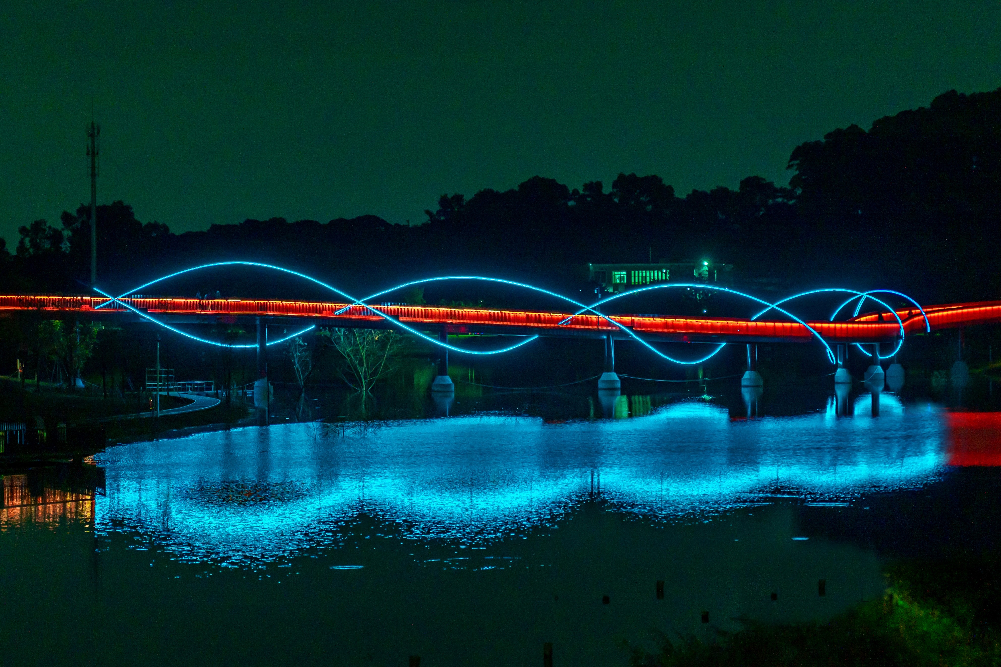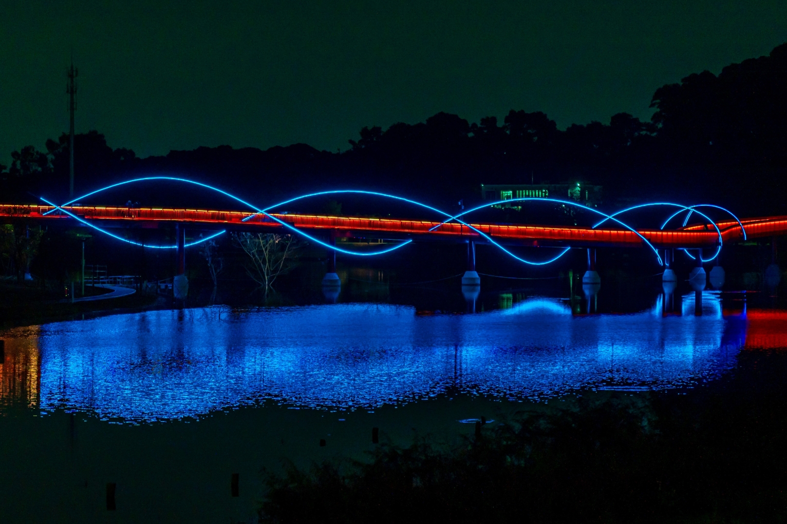 DNA is the essence of life and the identification code of species. "Evolution I ," as one of the works featured in Glow Shenzhen2023, draws inspiration from "DNA." It utilizes the unique reflections between Hongqiao and the lake to create a local artistic canvas, showcasing the scientific beauty of life's essence from a microscopic perspective in the macro world of nature. Through this installation, the artist aims to purely represent the fundamental structure of life, consciously restraining personal artistic emotions.