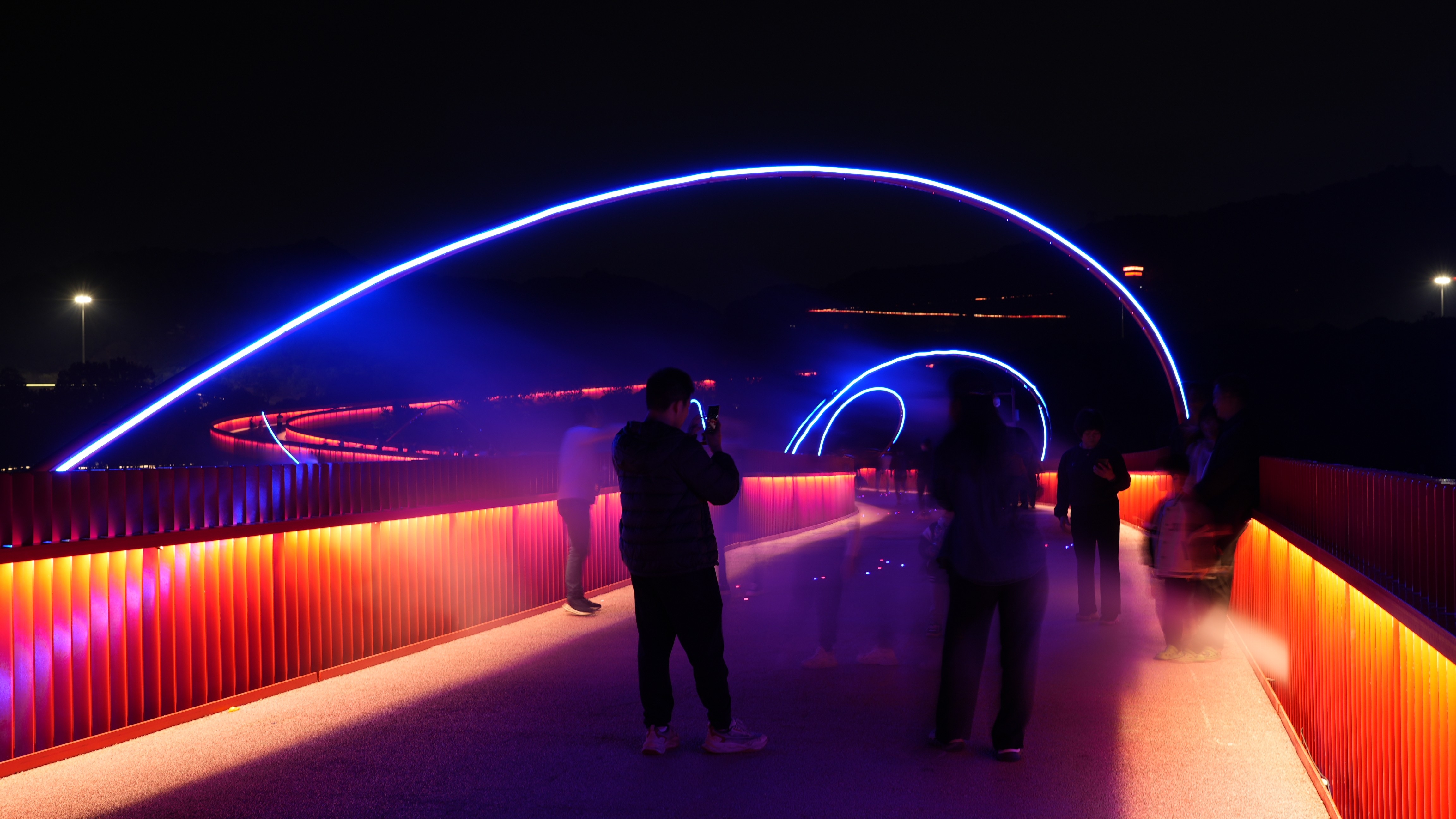 The DNA double-helix structure winds around the Hongqiao bridge, resembling a life form growing on the bridge, with flowing lights that gather and separate along the smooth curves, creating a strong sense of dynamism. Laser beams reveal the original double-helix form in the mist, offering a subtle and elusive visual experience. This dreamlike fusion of science and art invites the audience to delve deeper into reflections and imaginations about the essence of life.