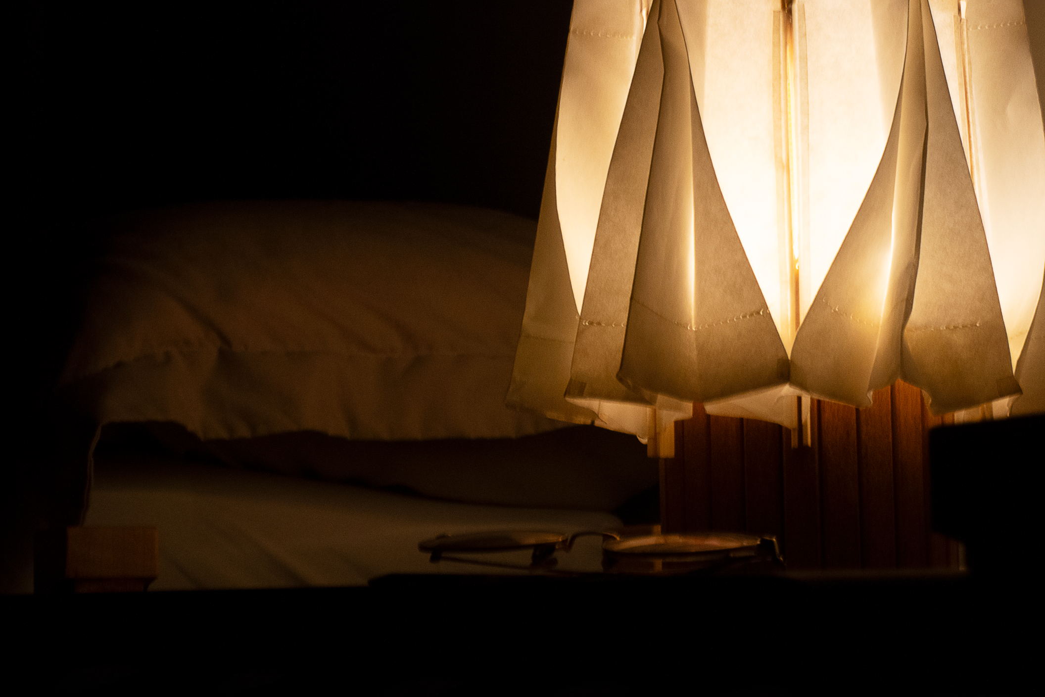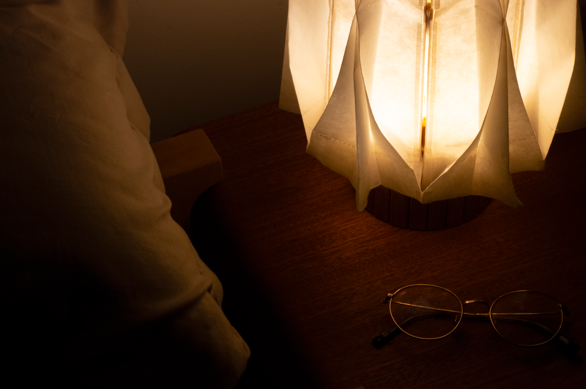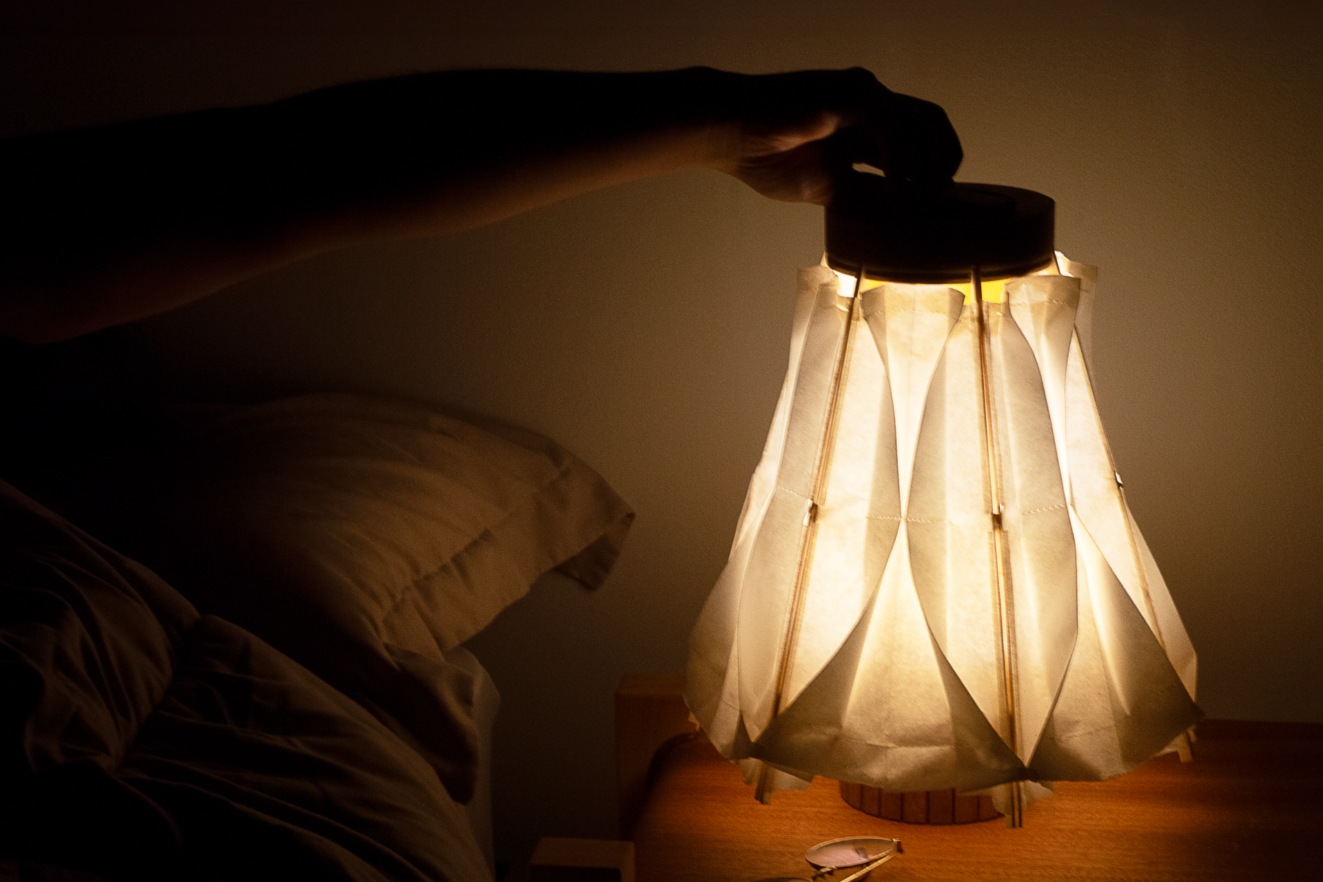 Entry DescriptionHikari is a collapsible paper lamp that aids in the routine of winding down. Its umbrella-like structure allows for the shade to expand and contract, providing adjustable brightness through a simple push or pull. The shade, made from sewn panels of washi paper, helps to diffuse light into a soft, soothing glow. With its simplistic pleated pattern and natural composition, Hikari provides a comforting ambiance to any living space.
