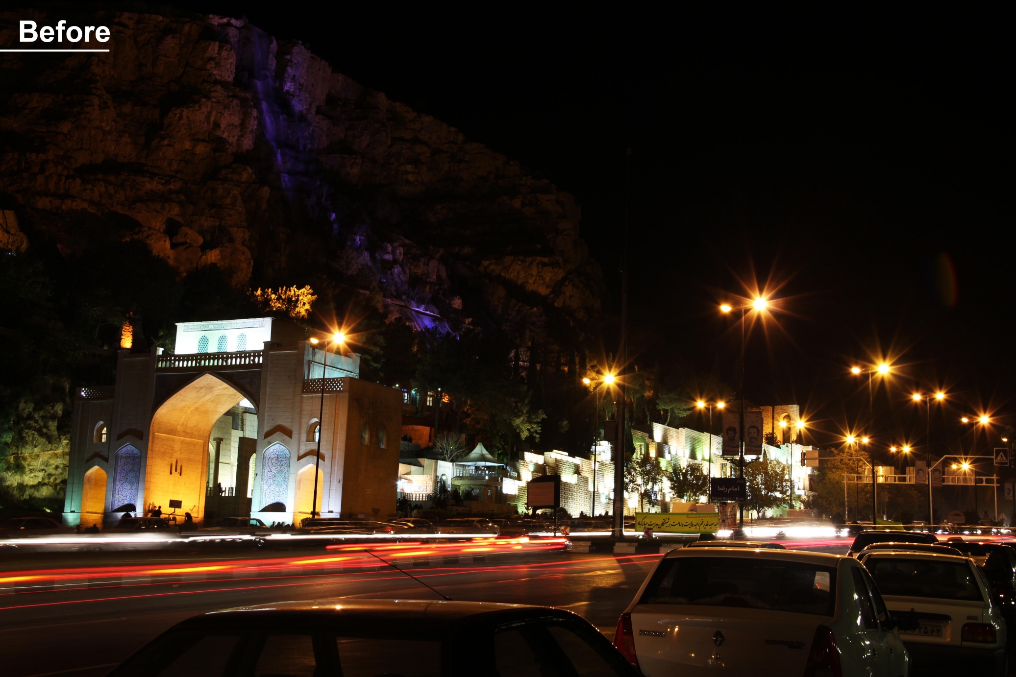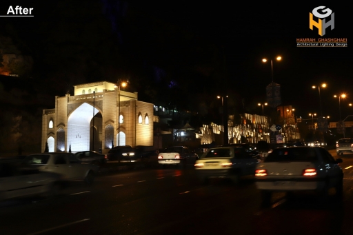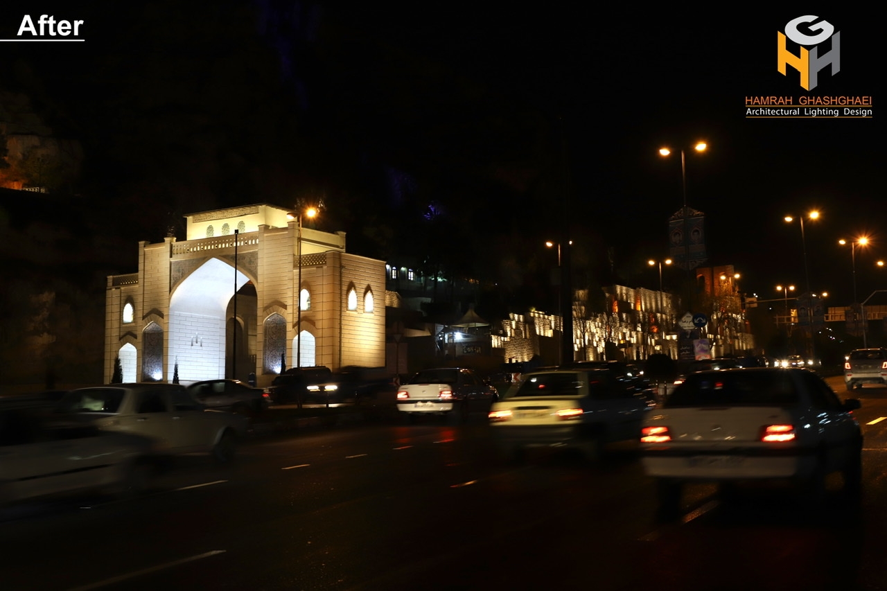 Shiraz Municipality asked me to do the lighting design and field studies of this project,So I did the lighting design of this building based on field studies conducted despite many challenges such as light pollution and the visual chaos around the building and very limited municipal budget. Use 6500k CCT for illumination under the arches and 3500k for the walls of the building to create color and light contrast on the building and between the building and its surrounding area. All of the light sources are high efficiency led lights from Osram,Ledil and Tridonic.the book is kept in the upper part of the building,Ihave tried to emphasize this part with increasing levels of luminosity.