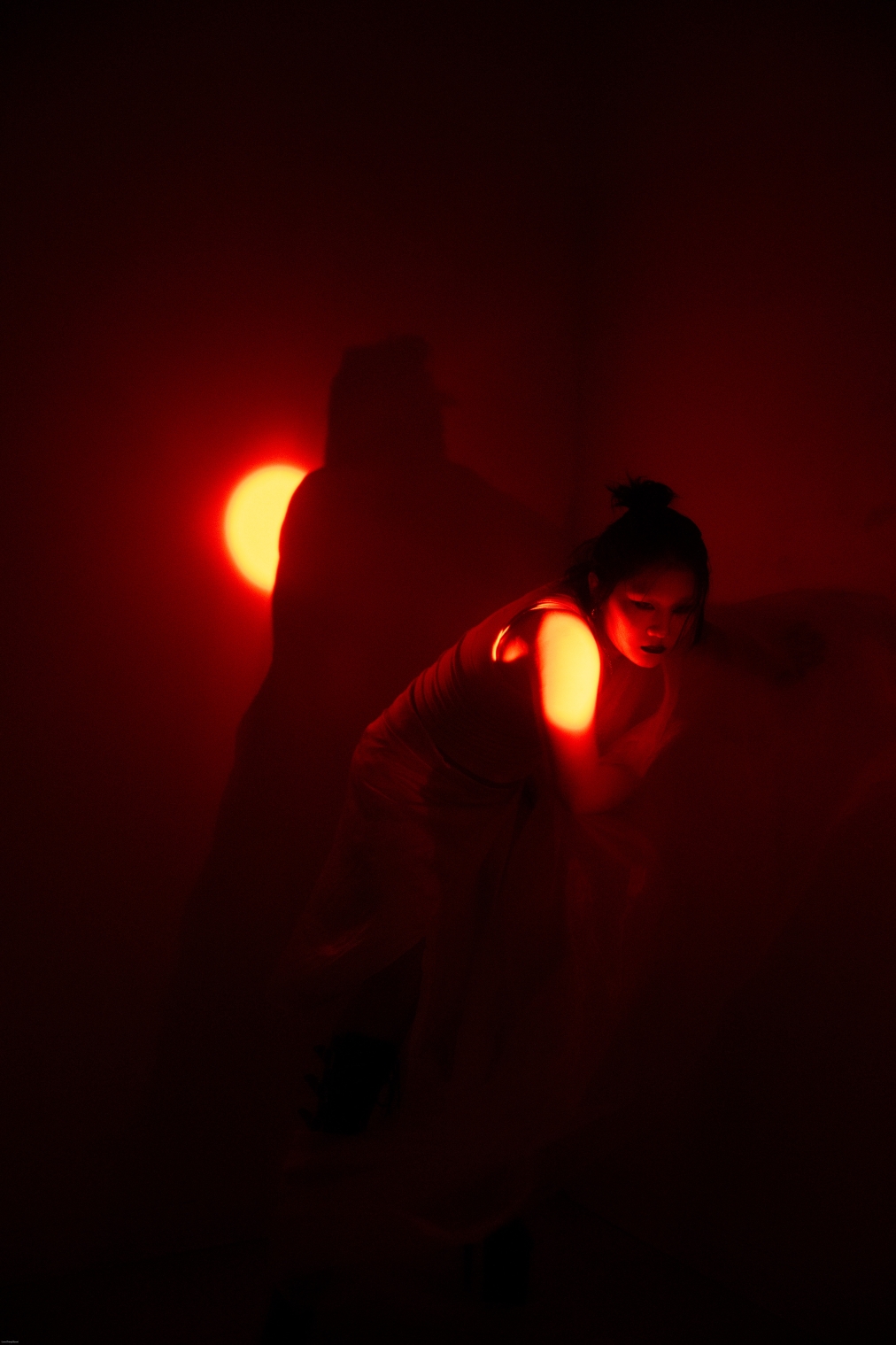 As the piece unfolds, light dynamically shifts with the evolving story—from subtle reflections to precise, sculptural highlights—accentuating themes of empowerment, fluid identity, and human presence. Manual lighting paired with reflective textures articulates nuanced emotions: vulnerability through soft gradients, tension in sharp contrasts, and vitality within shimmering transitions, enabling the performer to embody limitless human possibilities.