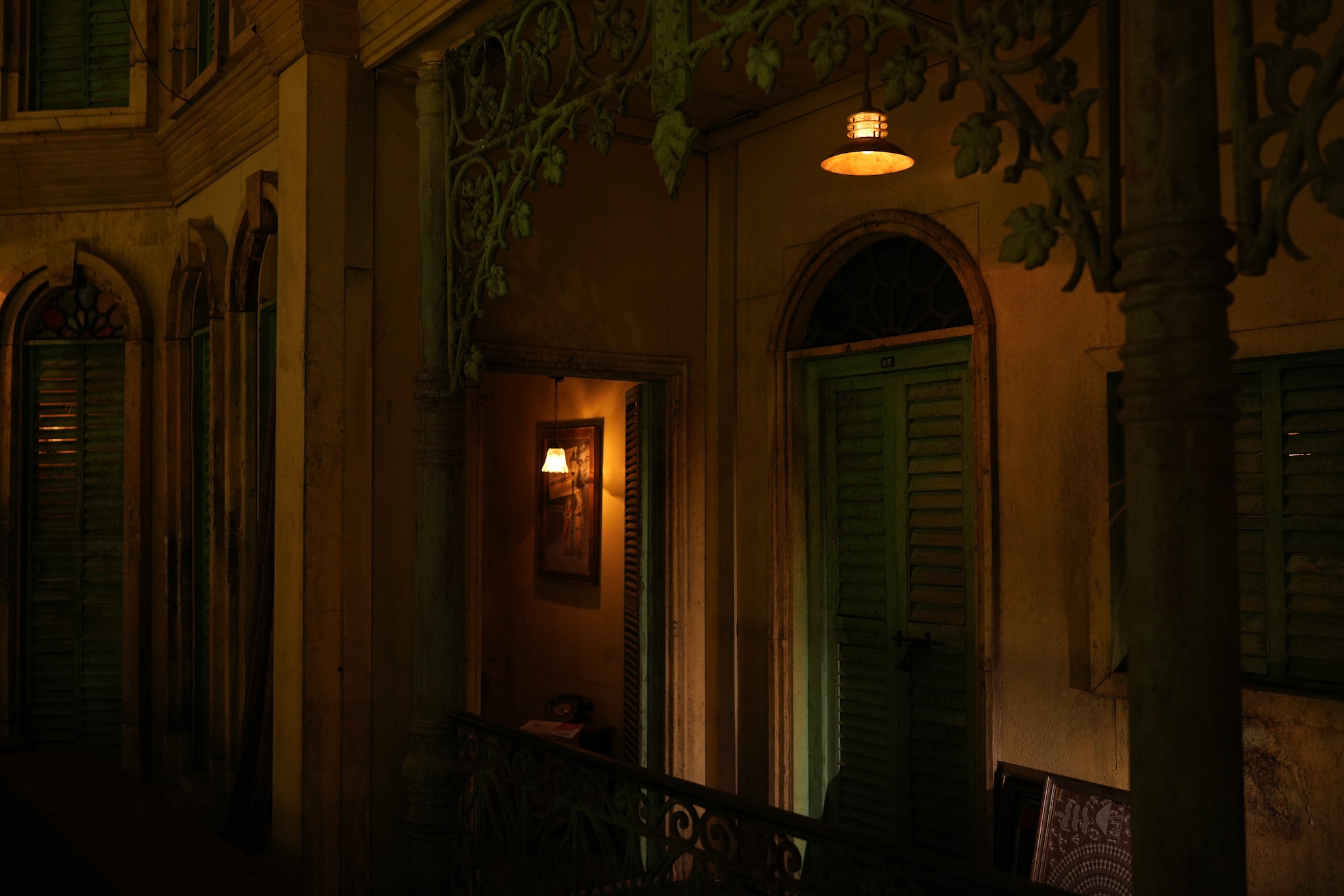 Research guided the lighting approach, including visits to heritage homes in North Calcutta and a study of archival imagery. Lighting in that era was eclectic: affluent families acquired fixtures during overseas travel, creating a blend of materials and forms, unified by the warm glow of halogen and incandescent light.