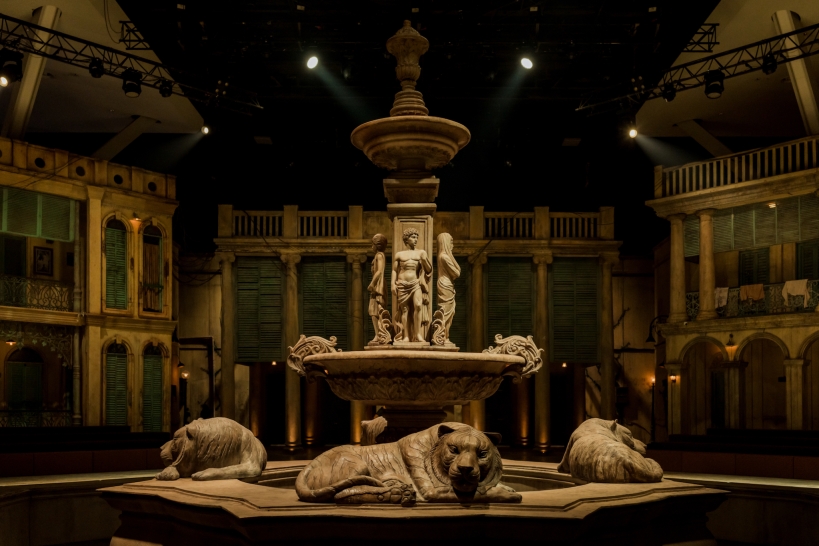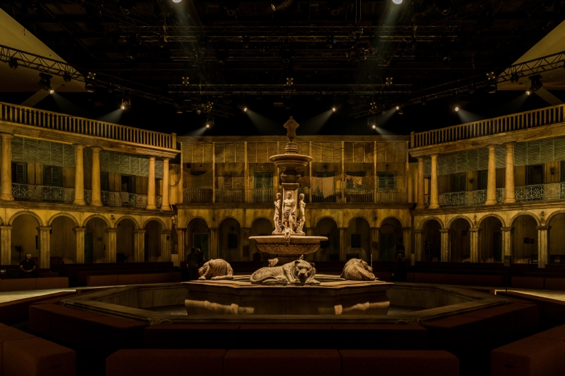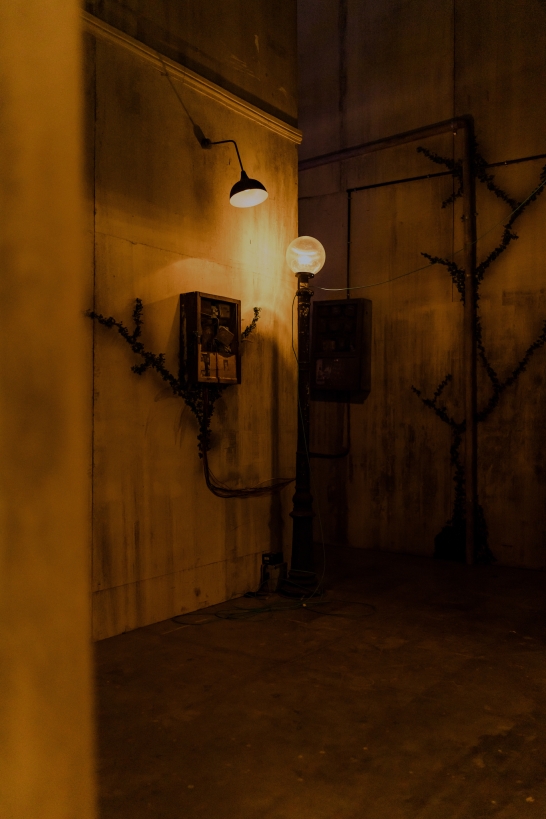 Custom ageing techniques introduced controlled patina, surface wear, and selective breakage. Dimming strategies mimicked organic lamp degradation. While largely static, lighting cues synchronised with intro music for transitions, creating a lived-in, timeworn ambience that fused technical precision with emotional resonance.
