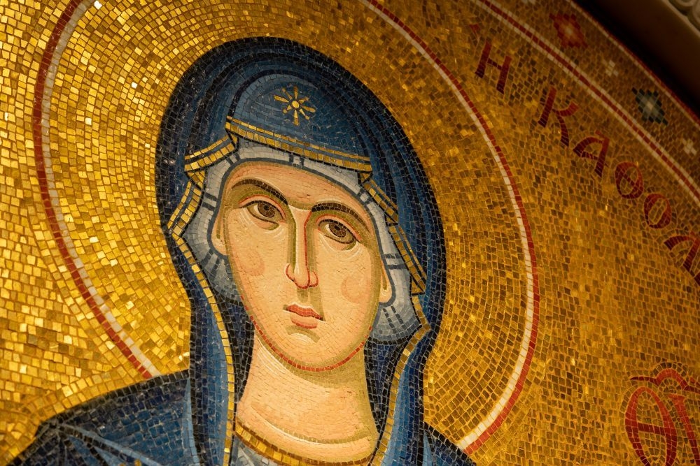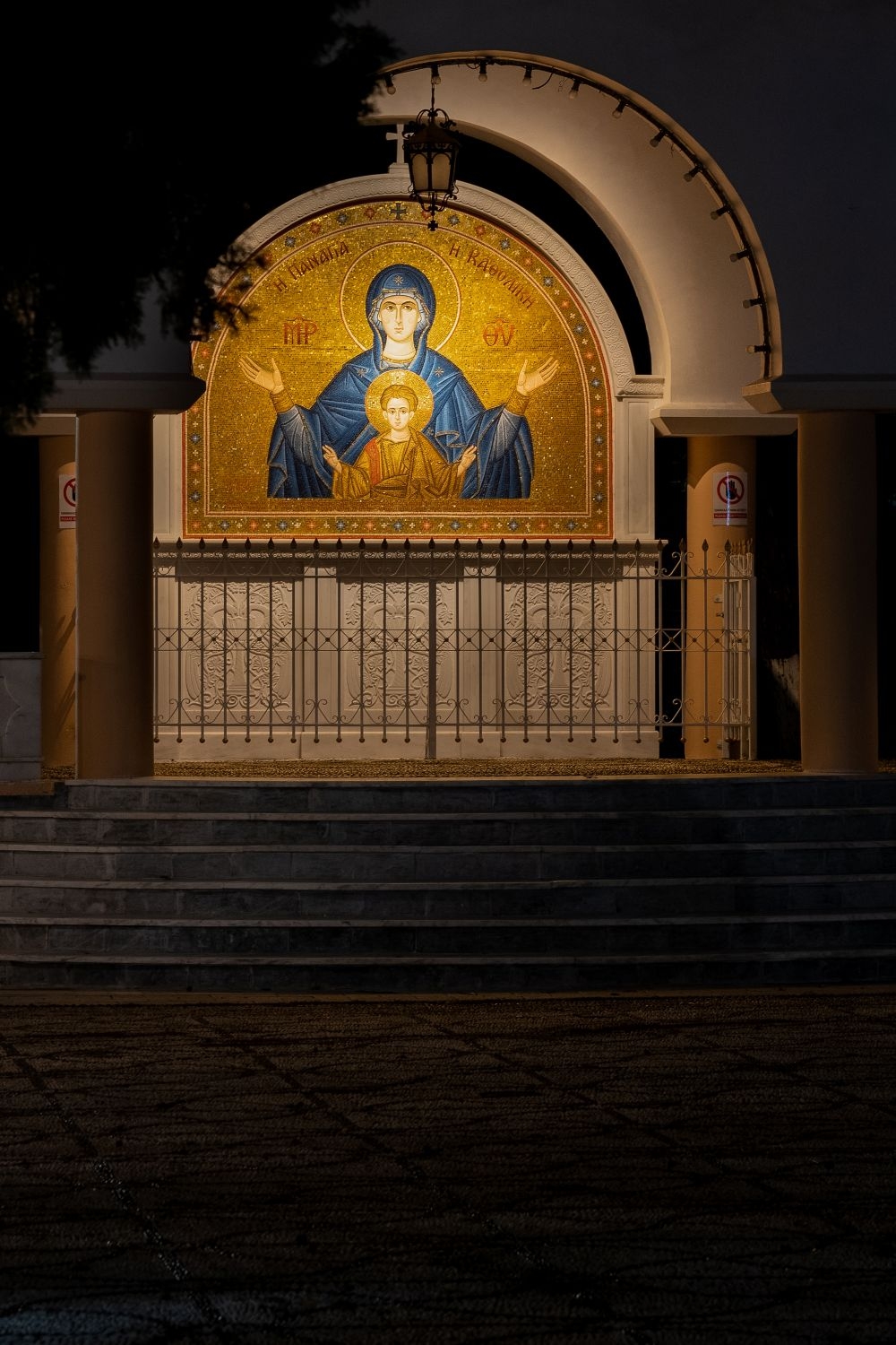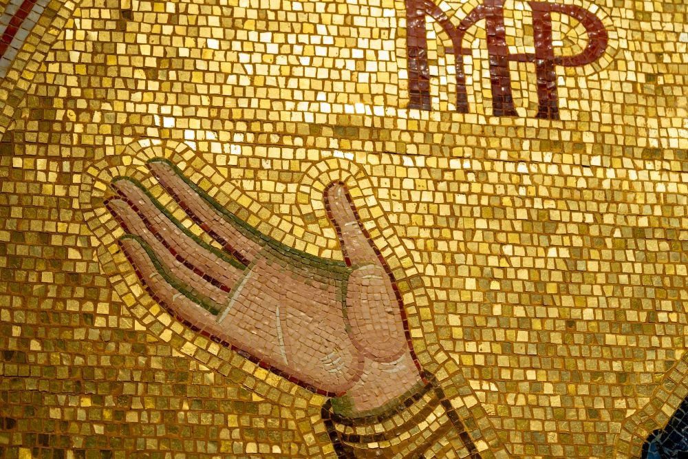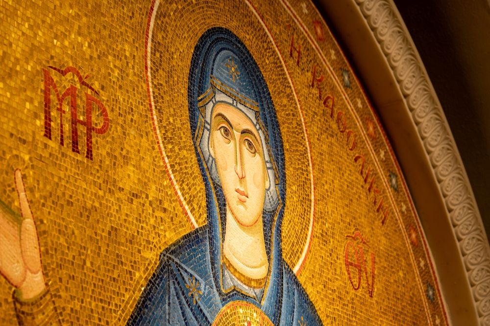 Entry DescriptionA work of mosaic art that renders the concept of the phrase "Light descending from above and illuminating from within." This is a concept deeply rooted in Christian theological and philosophical discourse, where light symbolizes divine grace and spiritual enlightenment.