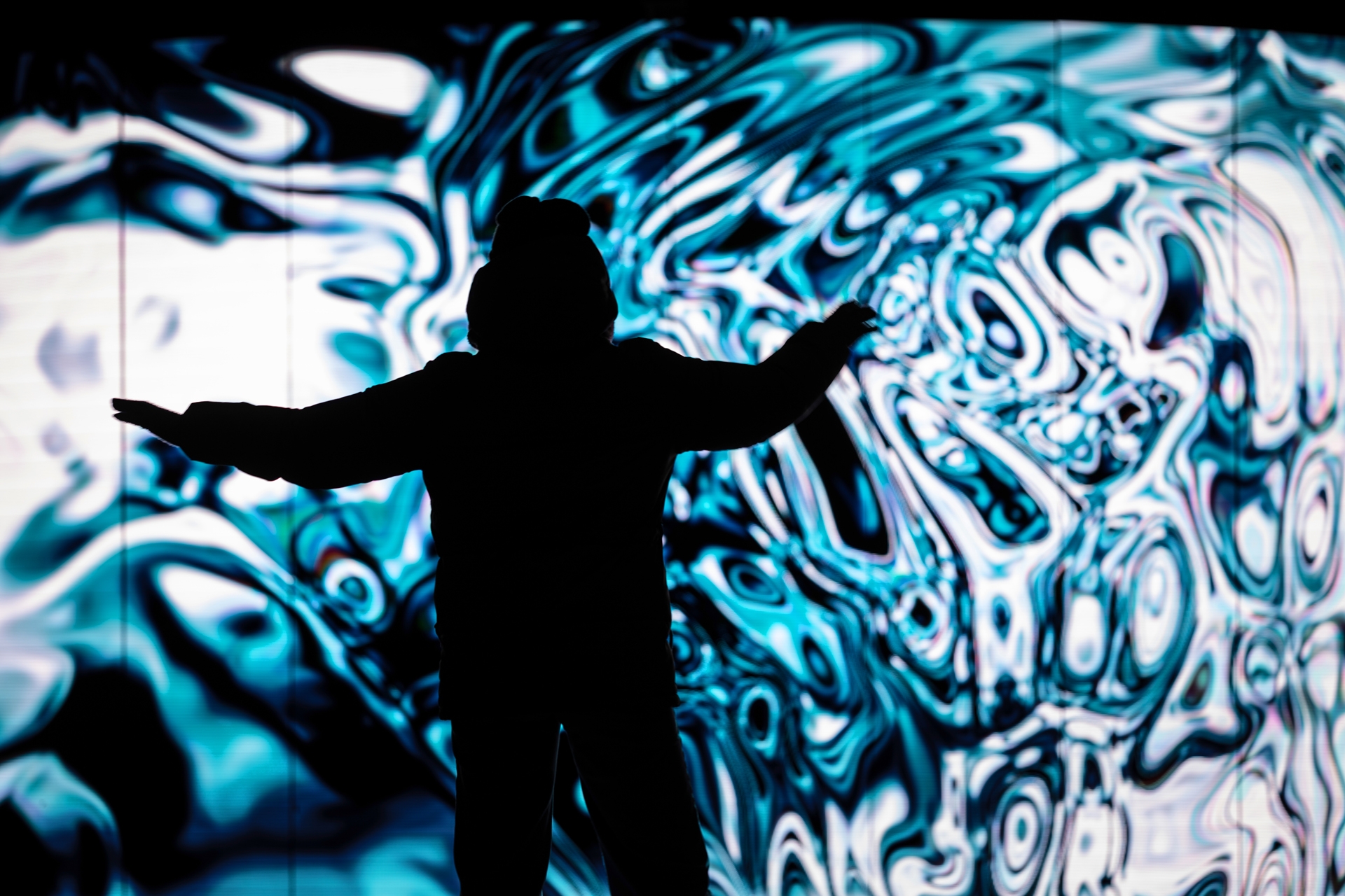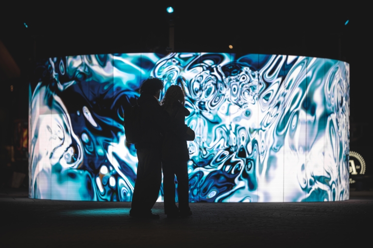 By employing a specially developed system that simulates natural algorithms, POINT OF (NO) RETURN merges art and science seamlessly. Real-time visuals respond to audience movements captured by advanced sensor cameras, while a sublime interactive soundscape amplifies the emotional impact.
