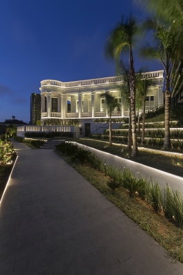 Lighting project developed to enhance the historical building of 1848 and granted by the State historical heritage in 2002. After its complete restoration the Hercílio's Luz House gone through a complete restoration process for 5 years, completed in June of this year. The lighting project was developed with the purpose of valuing the historical characteristics of the architecture respecting its peculiarities and aligned with the future use (which will be a rental spot for private events), surching as minimum constructive and visual interference as possible, both in the facade, interior (ground fl., 2nd floor and basement) exploring indirect light and landscaping which was designed with low height linear ilumination showing the pathway and the