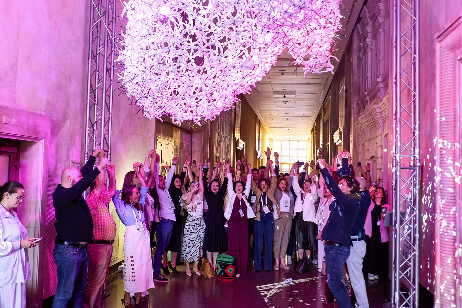 We developed the Ritual of Unity — an interactive activation that engages all participants. When people join hands and raise them, the installation responds with a dynamic light composition, creating a climactic experience of shared energy.