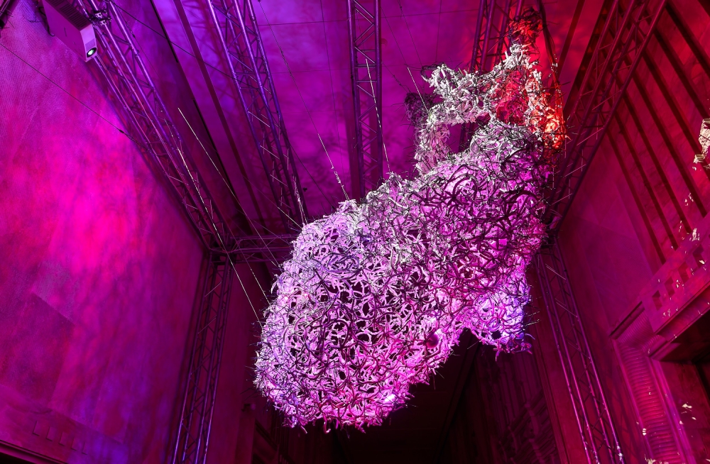 The sculpture comes alive when approached: its pulsation synchronizes with the viewer’s heartbeat, symbolizing the strength of the nation when we are united.