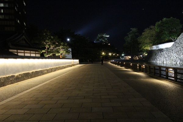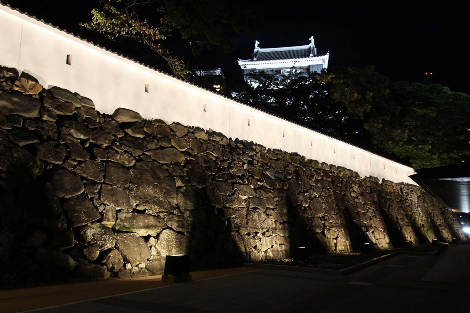 Lastly, for History Road, the white walls are emphasized to add elegance to the area. Lighting fixtures were installed at a lower level such as the handrails, so that they cannot be captured when visitors take pictures of Kokura Castle.