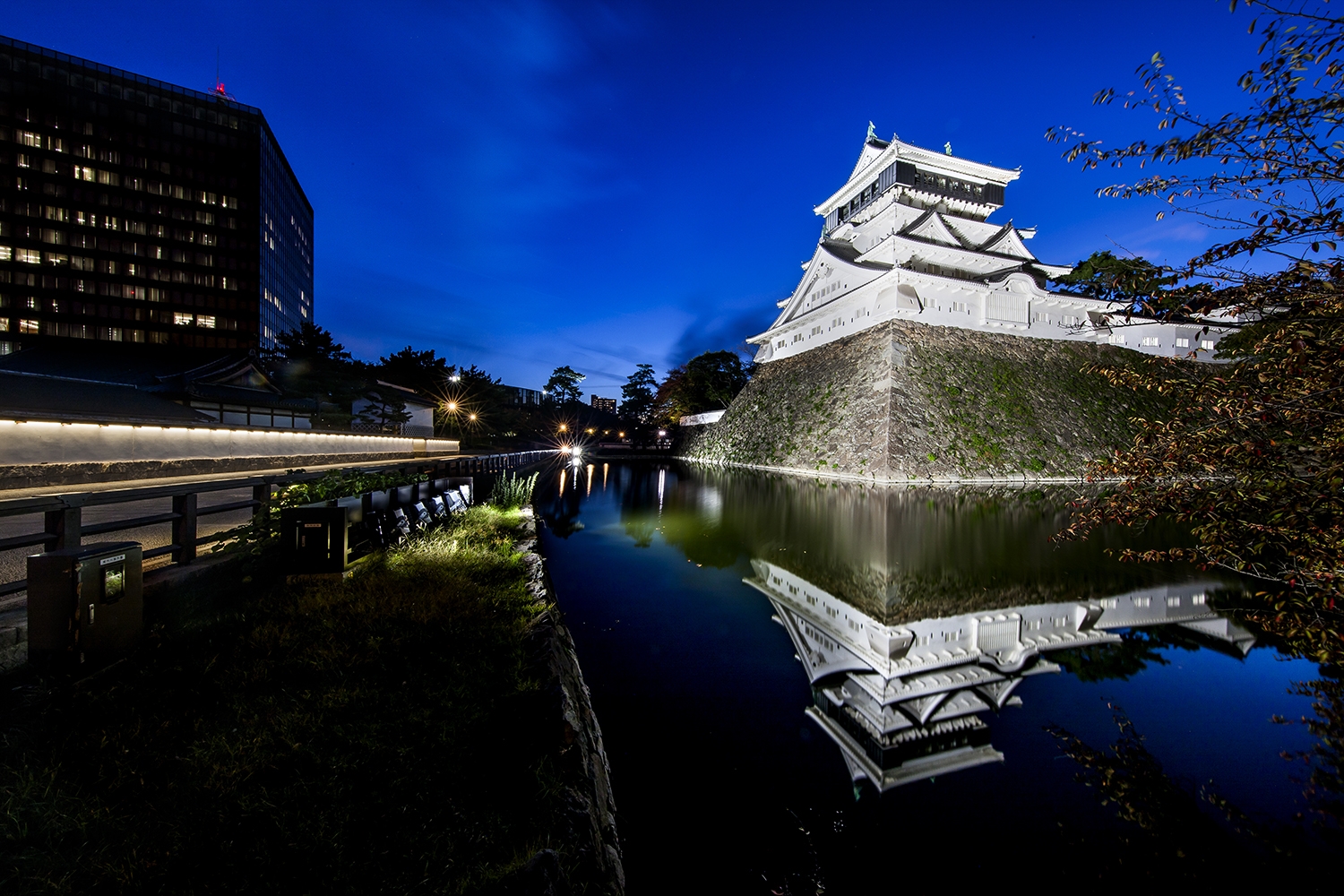 Firstly, for Kokura Castle, our concept was “castle mirrored in the water”. The castle is surrounded by a moat, and we used this feature to reflect the castle on the surface of the water. We wanted to aim to light up exact places on the castle, so different beam angles from 3° to 50° were used.