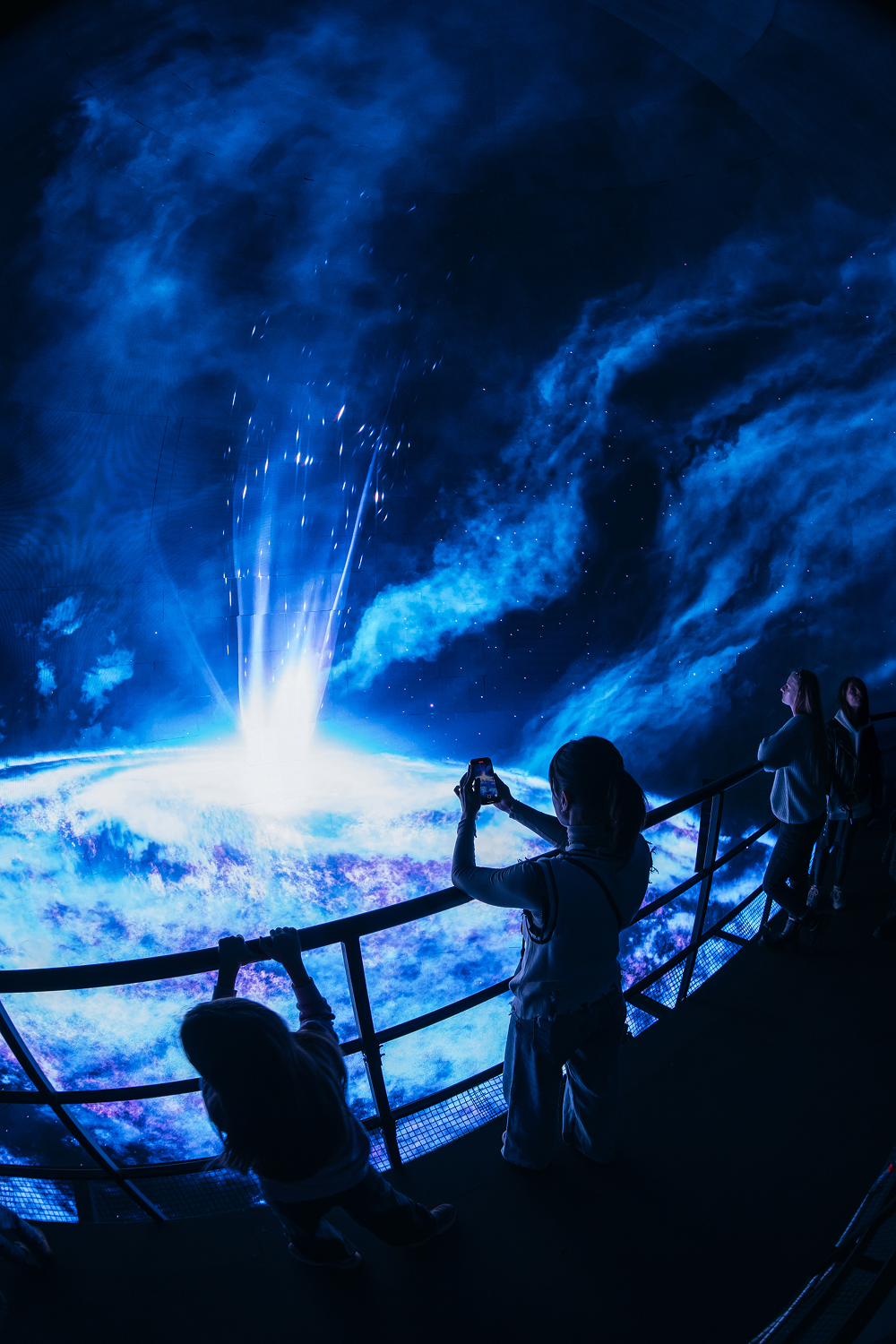 The visuals, designed specifically for the form and scale of the sphere, are paired with an immersive soundscape that deepens the experience.