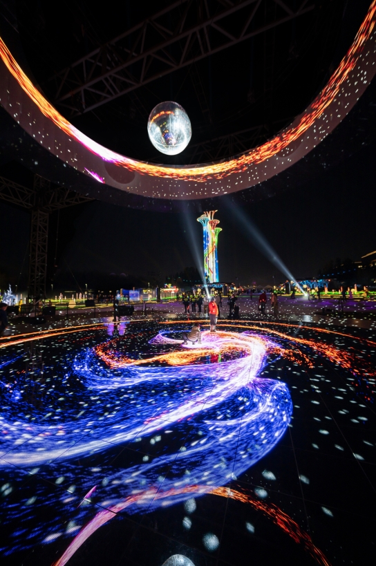 "Ring of Life" is a large-scale outdoor new media lighting installation. It combines visual artistry and interactive human experience. The concept is a philosophical idea: “harmonious coexistence of heaven, earth, human”, an immersive space that cross boundaries between reality and fantasy.