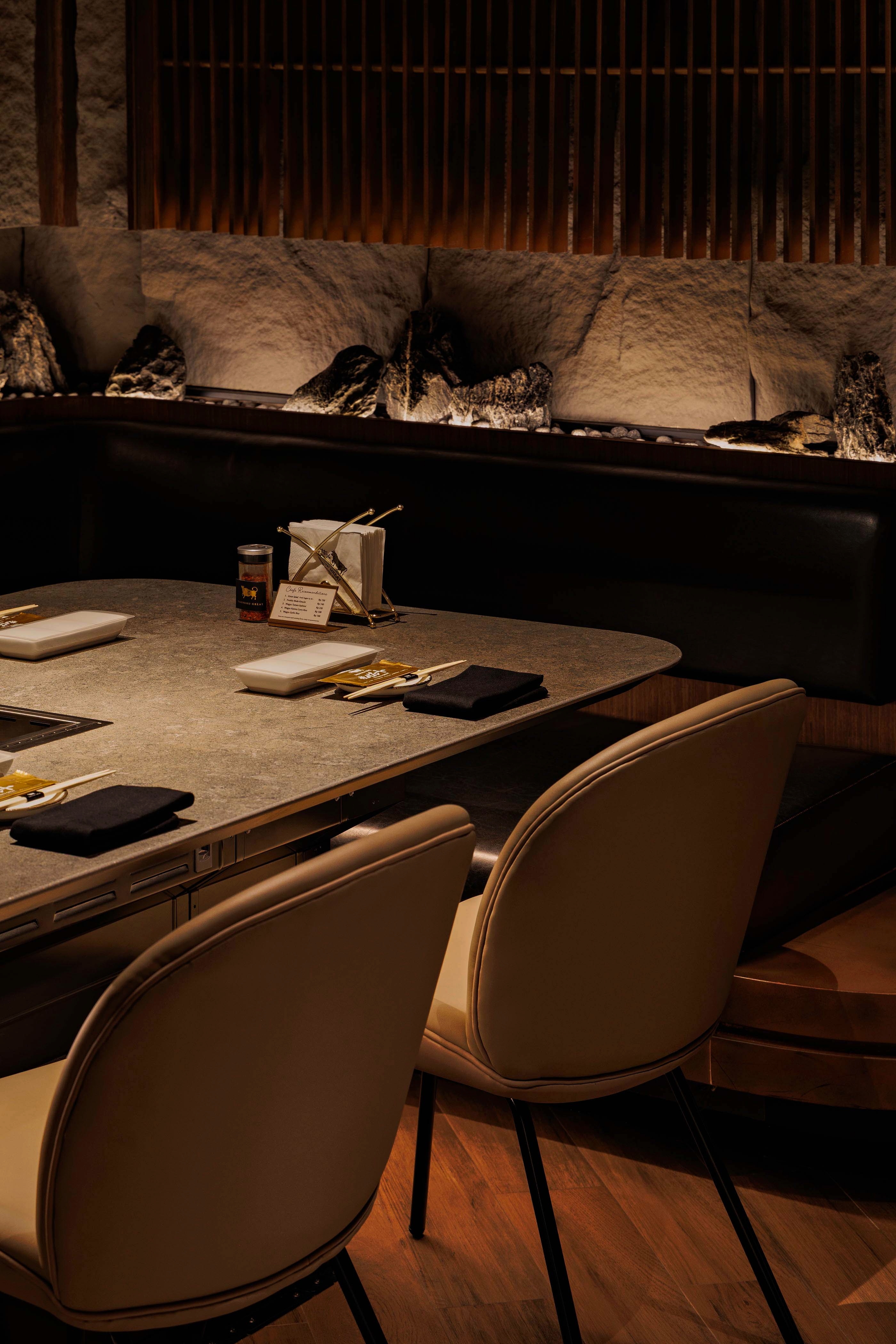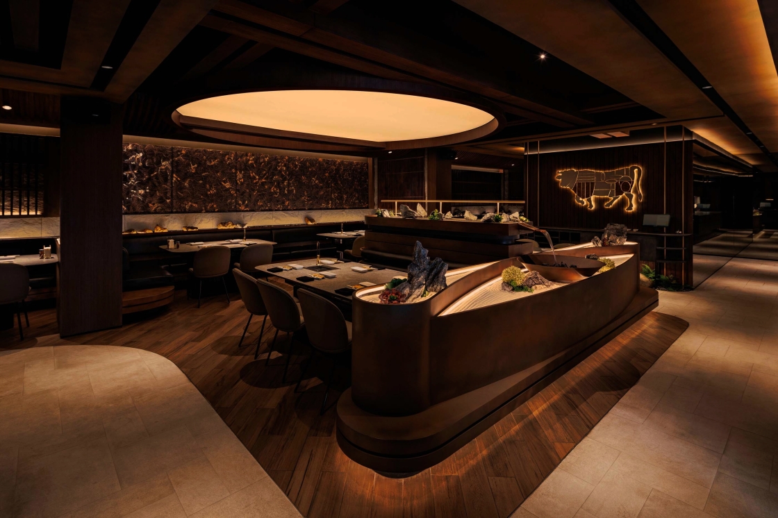The result is a cinematic dining atmosphere: warm, intimate, and immersive, where the interplay of light and shadow draws guests into the experience, making every moment—from the sizzle to the final bite-visually unforgettable.