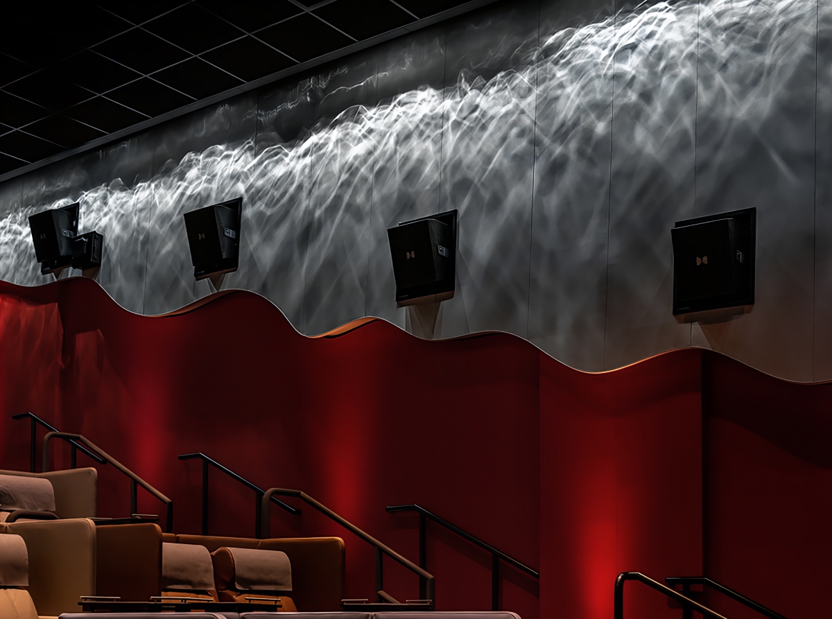 Sustainability ApproachThe lighting design of Studio City Cinema seamlessly integrates sustainability into a high-end, visually dynamic project. Energy-efficient technologies like LED lighting, RGBW pixel control, and dimmable systems reduce energy consumption while maintaining impactful effects. Durable materials and low-maintenance systems minimize waste and operational costs. Reflective surfaces, such as mirrored ceilings and water-effect finishes, amplify light efficiently. The adaptable design supports multi-functionality, catering to diverse events without requiring additional infrastructure. By balancing environmental responsibility, economic efficiency, and social well-being, the project sets a benchmark for sustainable lighting in entertainment spaces.