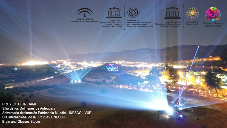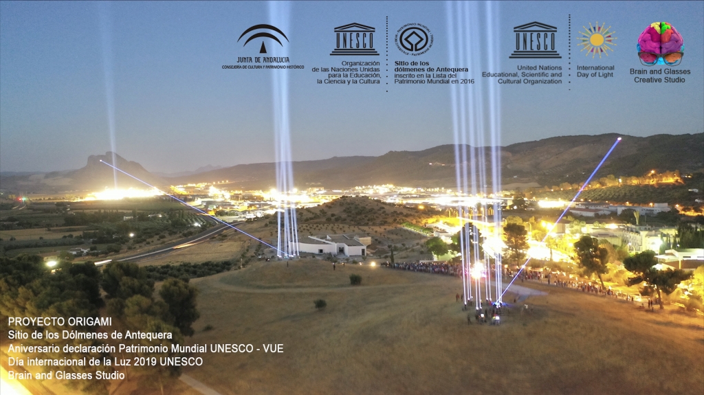 If we take a square piece of paper, and mark a dot in both of the opposite corners; one of them being today, and the other, 6,000 years ago and we then trace a line connecting them, representing the time passed between them; when folding the paper square down the middle, the opposite ends touch. This is what we will achieve with Origami; we will connect both ends, present and past, representing our ancestors' vision by using creativity and technology, in one universal project.