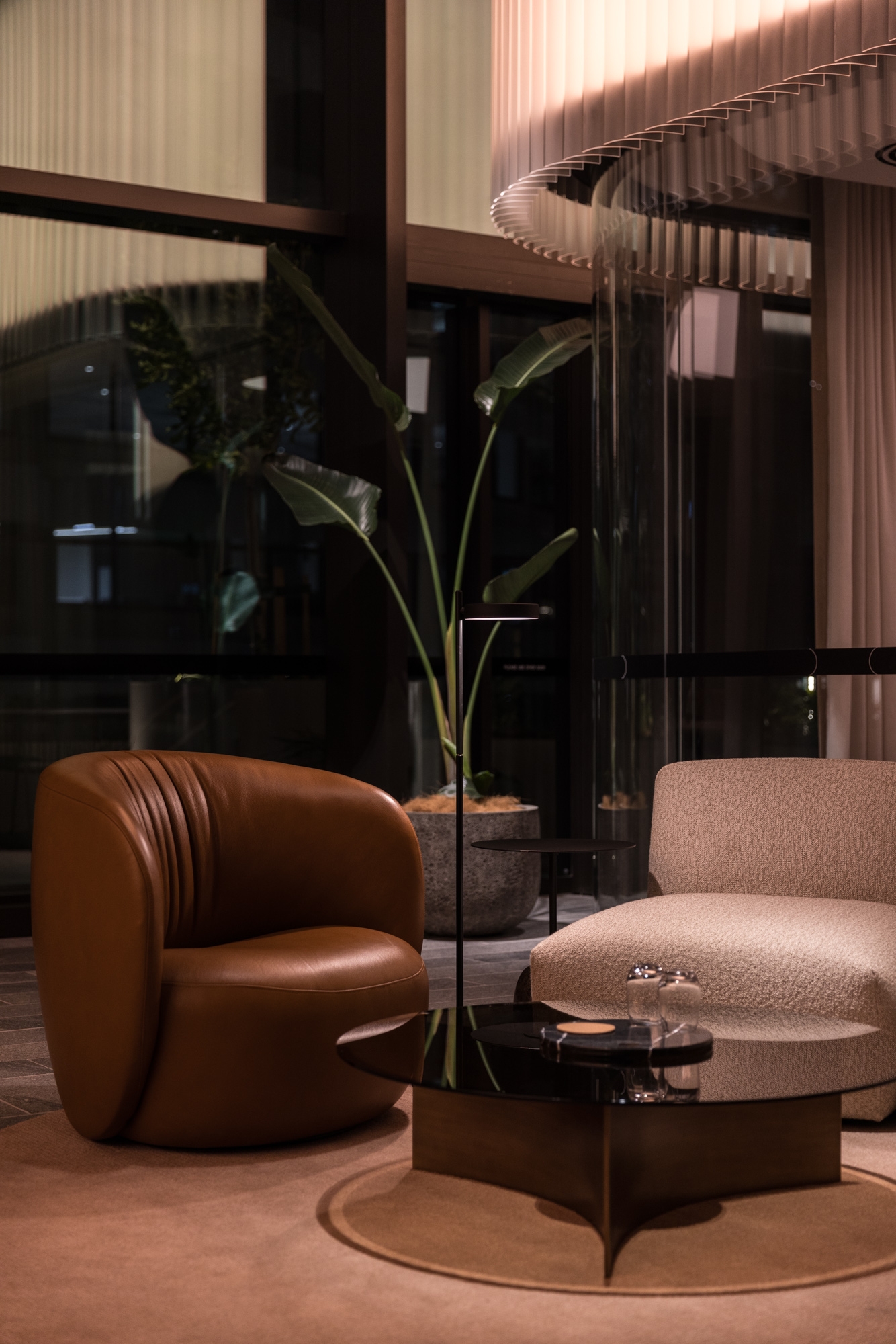 Moving to the night scene, the ‘lanterns’ and secondary layers of light transition into a softer and warmer 2700K, with accent lighting to create drama for a more hospitality character.