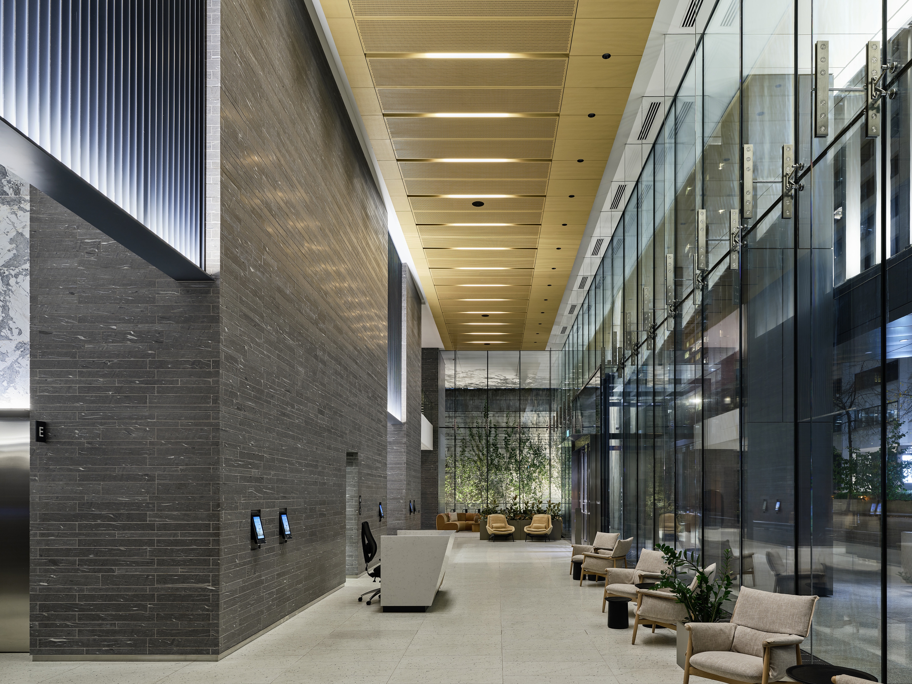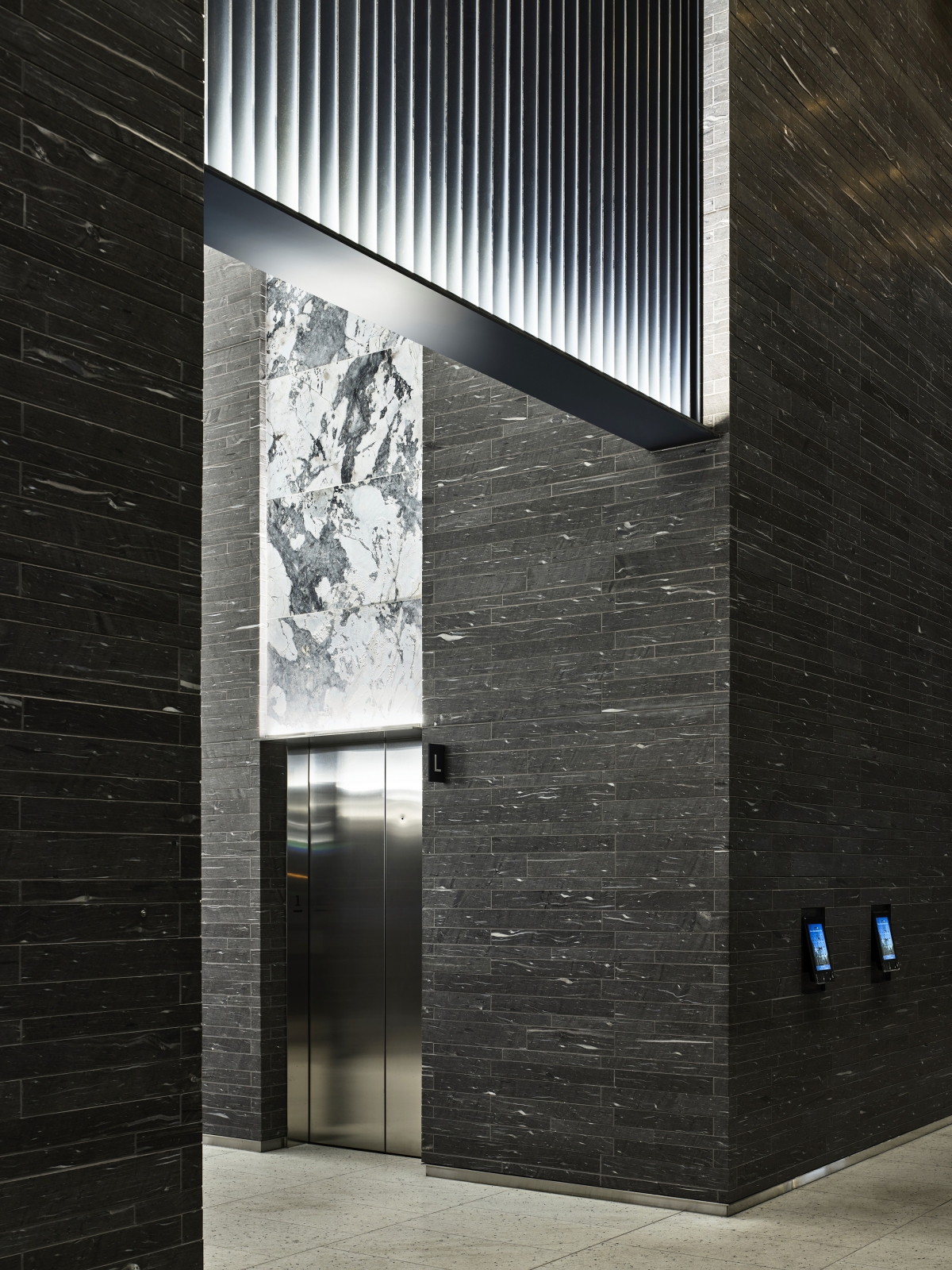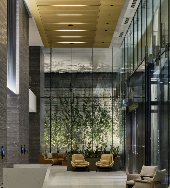 Sustainability ApproachThe 37-storey building is North America’s first high-rise to meet both Zero Carbon Building Design standards and LEED Platinum certification. Luminaires with optimized optics were selected to maximize efficiency. Their minimalist forms reduce aluminum use. The team selected Canadian-made luminaires wherever possible to help cut CO? emissions from transport and manufacturing. Glass curtain walls bring natural light deep into the interiors, further reducing reliance on artificial lighting.
