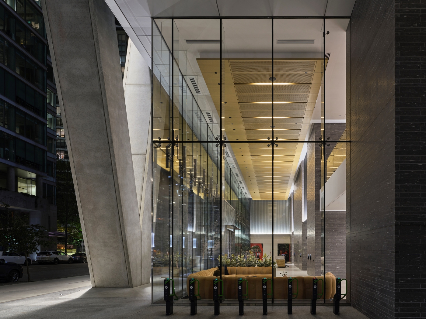 Entry DescriptionThe 37-storey tower, Vancouver’s tallest office building, required a lighting design that honored its modern architecture while resonating with the surrounding urban fabric of older neighbors. Inside, the lighting serves a diverse tenant community, elevating the three-storey lobby and interconnected floors while establishing a spatial rhythm that intuitively guides visitors.