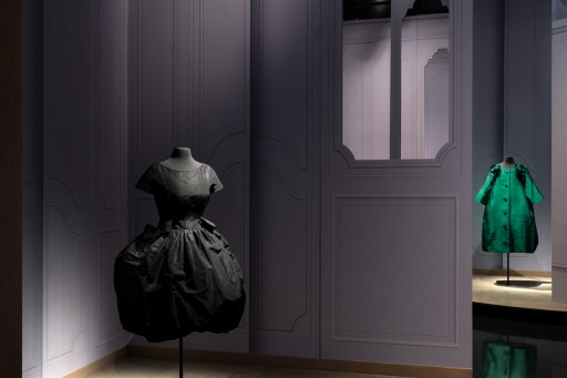 The first section YSL for Dior features exquisite pieces from early in the designer's career. Inspired by the scenography we created an elegant reflected light in the Parisian salon set and used key light with singular shadows to express the masterly form & techniques in each piece.