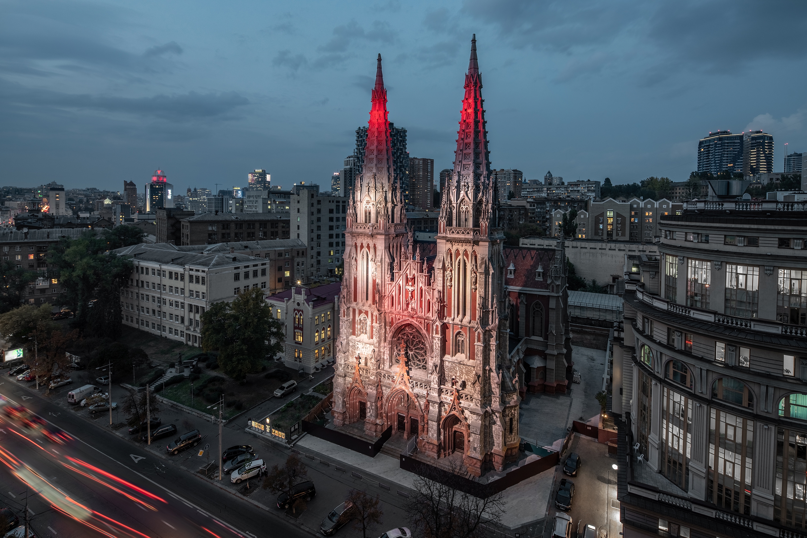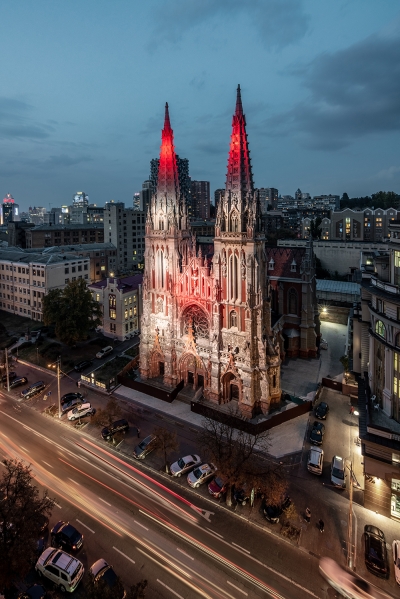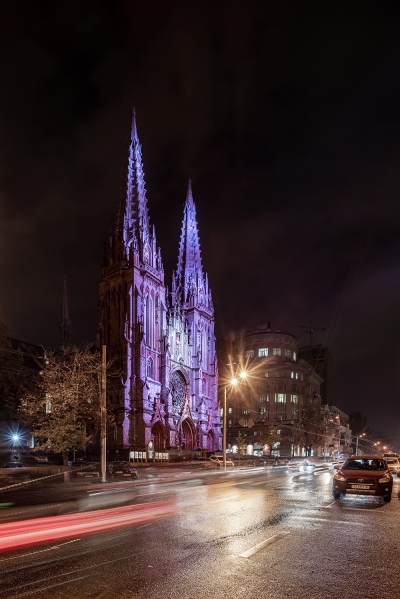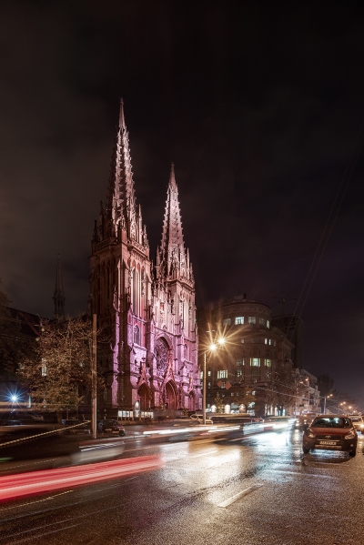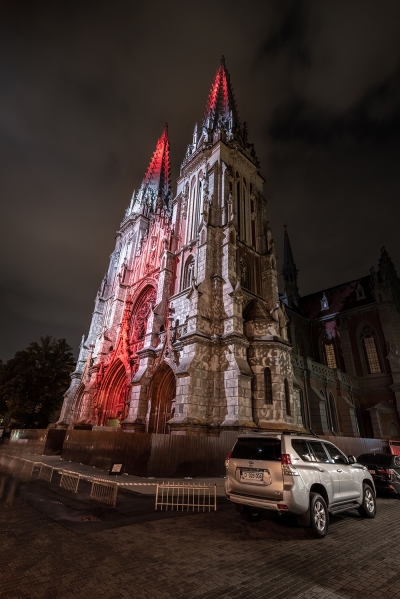 Catholic church of St.Nicholas in Kyiv - a legacy preserved in the city center over a century ago. Until recently, a beautiful monument of architecture at night stood a dark unlit silhouette.