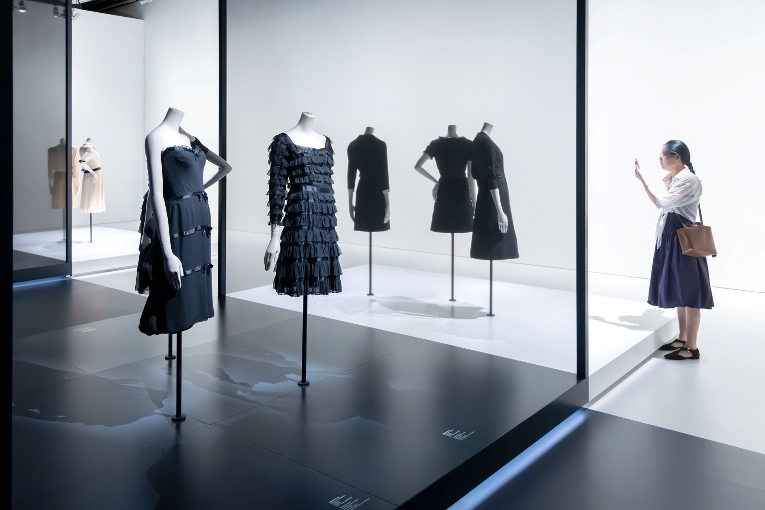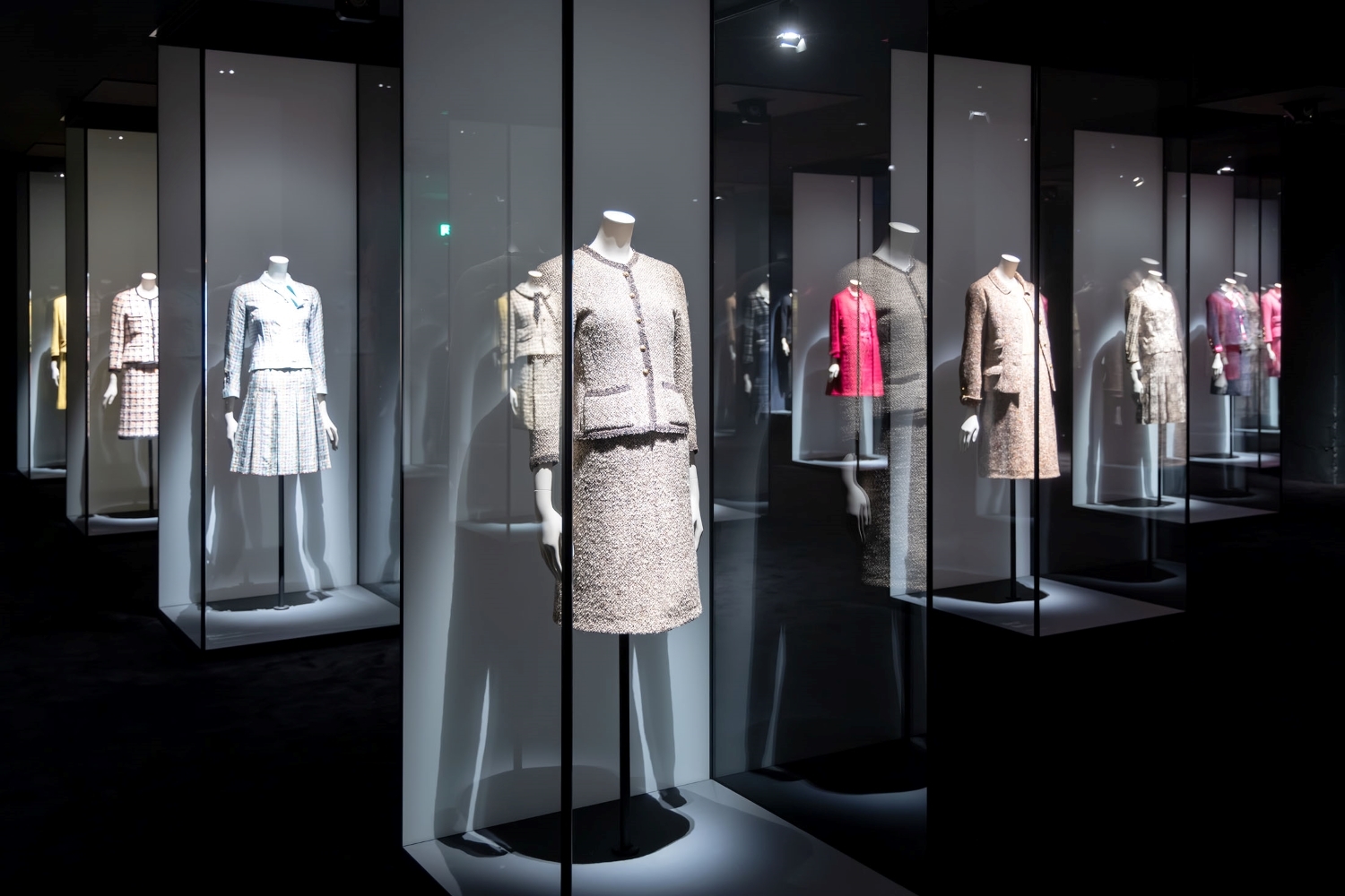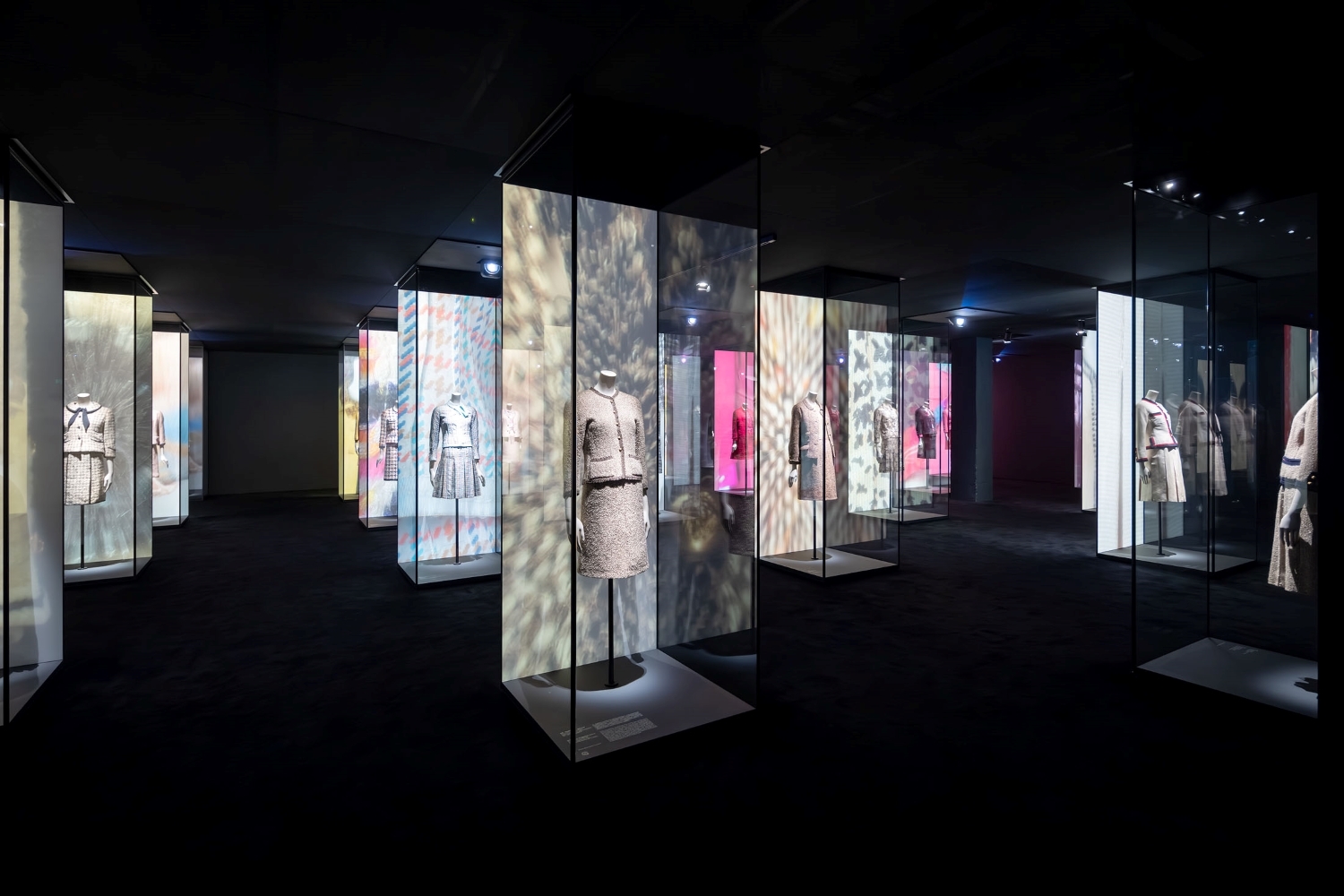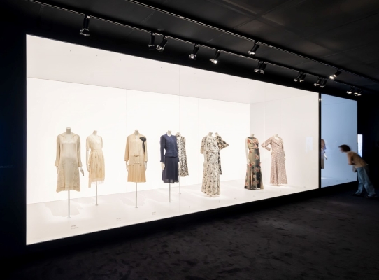 Entry DescriptionFor this showcasing exhibition, the lighting design emphasized precision, elegance, and minimal visual intrusion. The aim was to honor the craftsmanship of each piece while maintaining spatial clarity. Adjustable track heads provided flexible, focused illumination, enabling curators to reposition lighting as needed without disrupting the aesthetic. Framing projectors sculpted light around garments, highlighting textures and silhouettes while avoiding spill and shadows onto surrounding surfaces. For protection, each garment was lit to just 5 footcandles. Controlled ambient light and strategic contrast created the perception of brightness through contrast, not intensity. Distinct backdrops with varying color temperatures emphasized seasonal differences, while uniform 3000K, high-CRI front light provided cohesion. The Suits gallery, discreet case lights augmented dynamic projections while meeting strict light level limits. In the “little black dress” case, concealed coves provided ambient light that revealed dark fabrics, aided by carefully aimed framing projectors avoiding reflections on curved glass. In the day-to-night gallery, brightness balance between light and dark spaces was finely tuned. Films applied to museum track fixtures simulated warm daylight, while footcandle limits were maintained. Spotlights were precisely framed to eliminate shadows onto elevated pedestals.