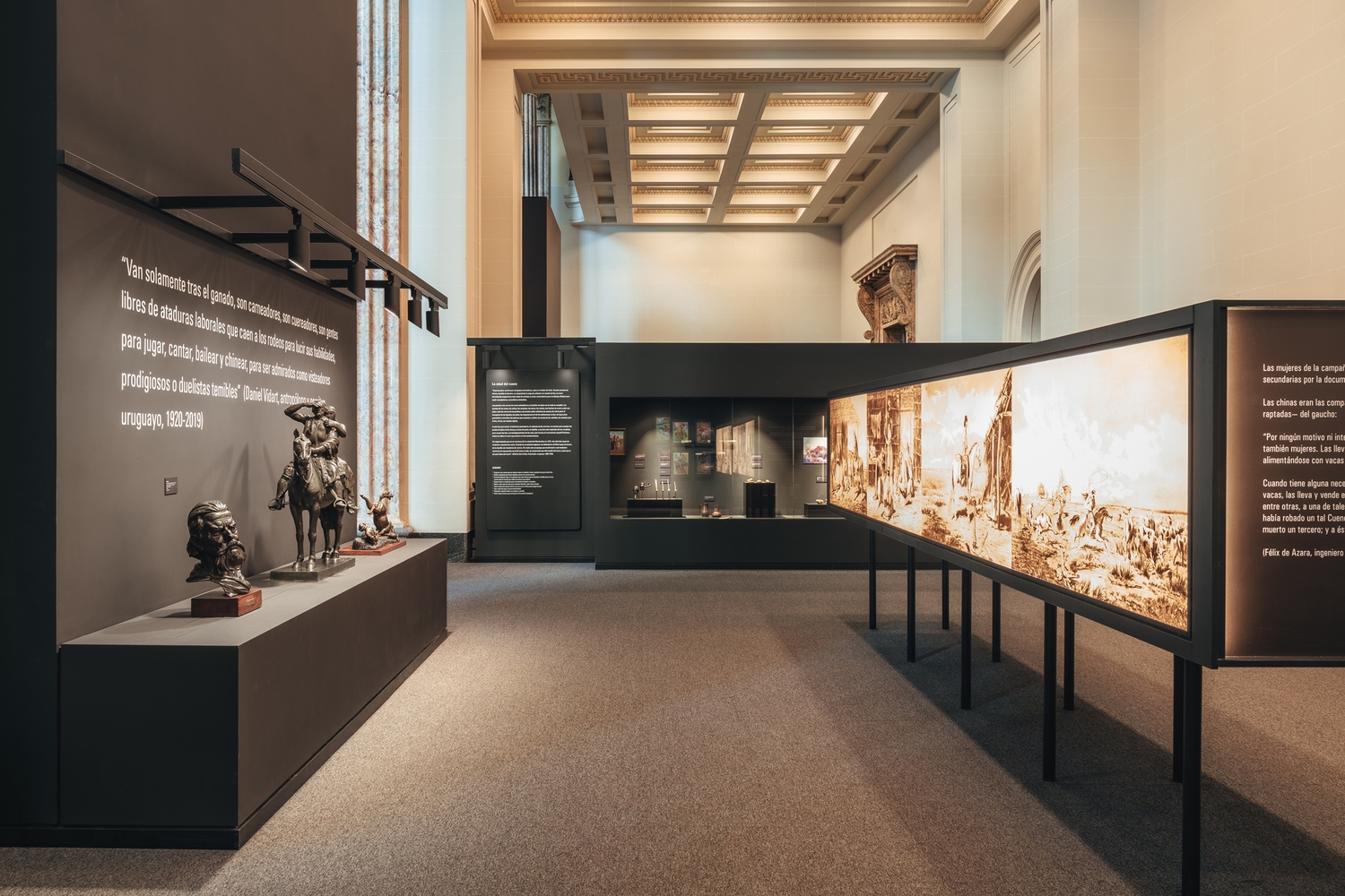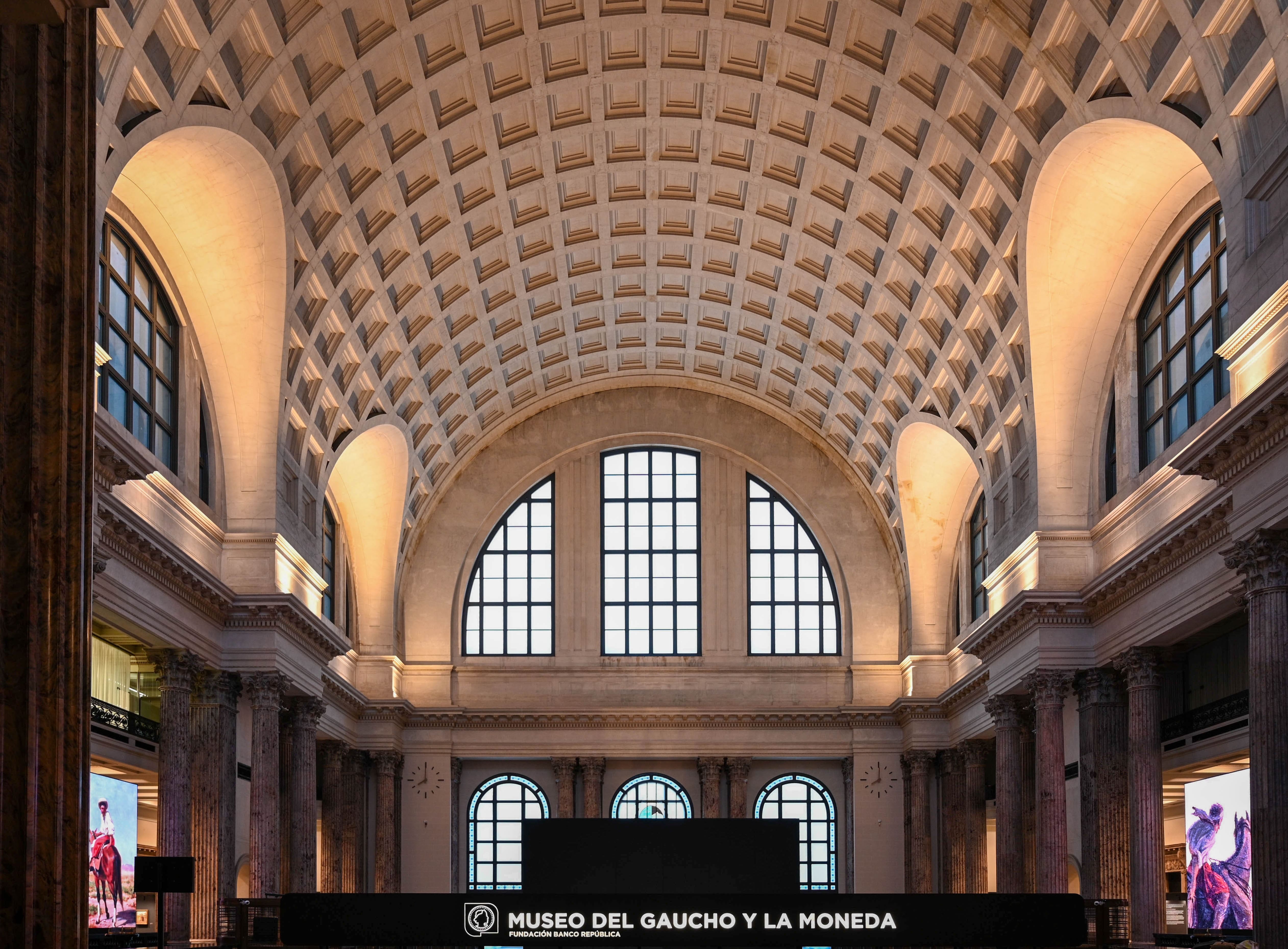 The neoclassical space, monumental in scale, is defined by a central atrium crowned by a grand vaulted ceiling, flanked by six perimeter rooms. Built using a refined palette of noble materials, the architecture exemplifies the value of early 20th-century public design in Uruguay.