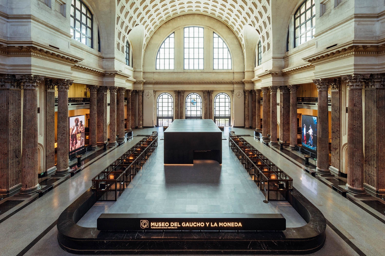 Entry DescriptionLocated in the Main Hall of Banco República’s Central Office in Montevideo, this project is part of an adaptive reuse initiative that transformed a large banking hall into a cultural venue.