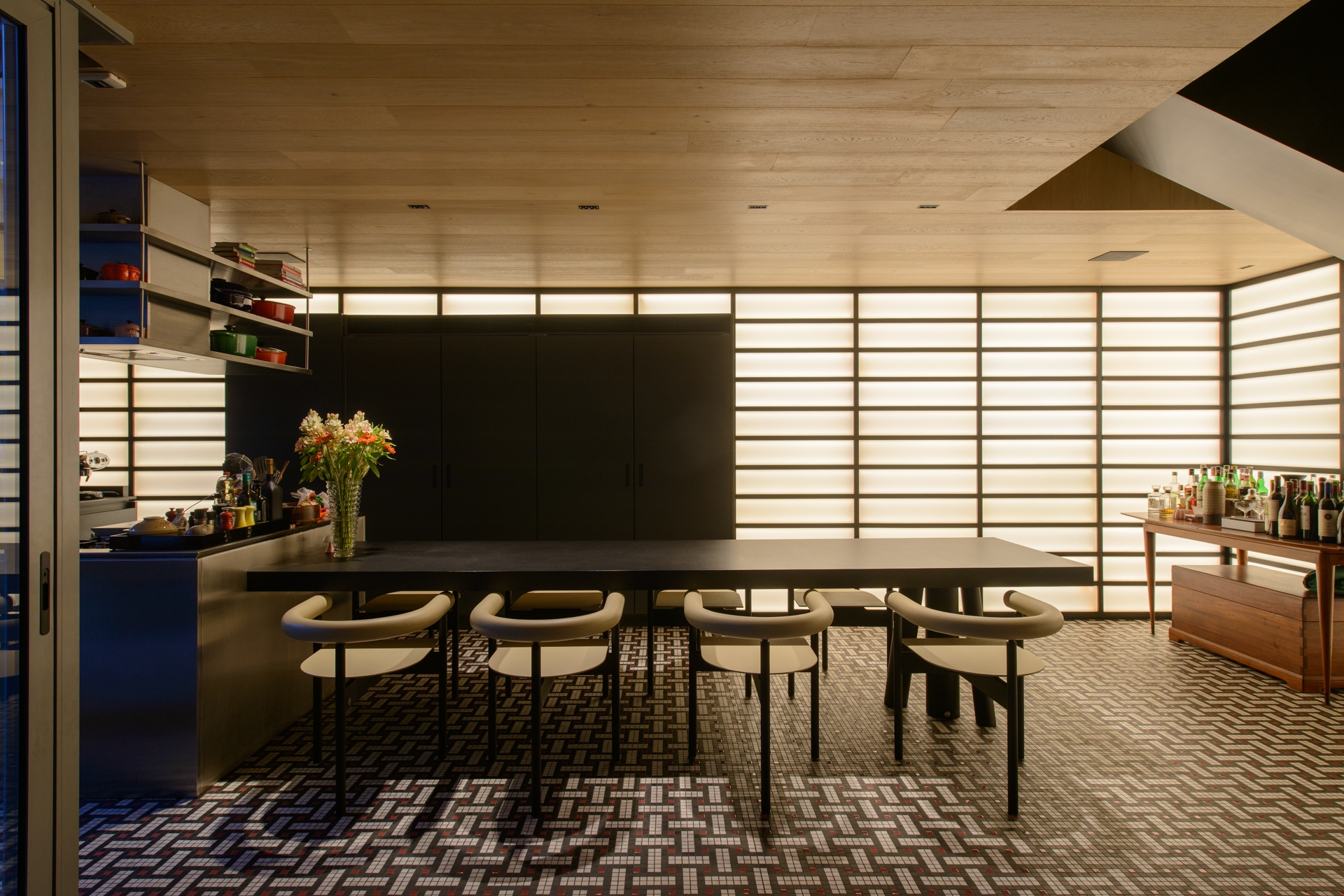 The architectural and lighting systems were conceived with modularity and reversibility in mind. The shoji-inspired luminous walls are easily serviceable, and the joinery elements are demountable, enabling future reconfiguration or reuse in a circular economy model.