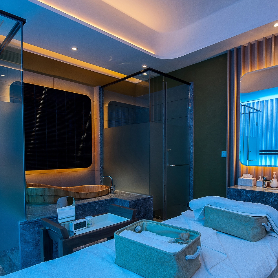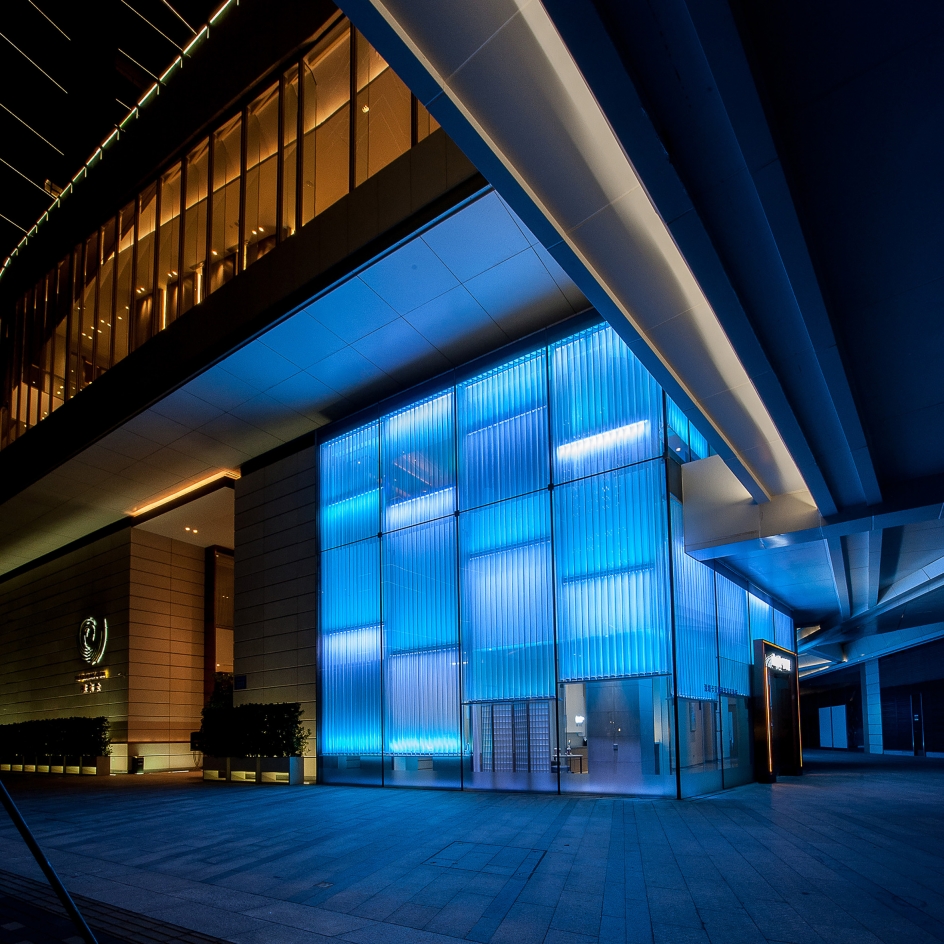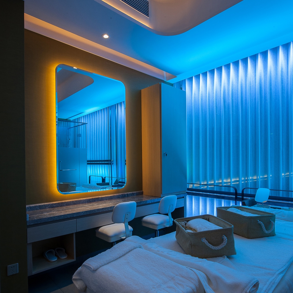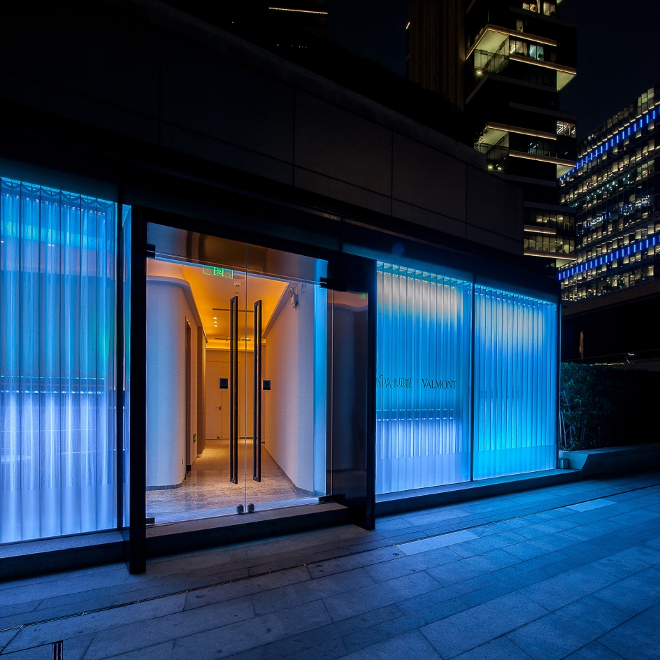 The full high glass wall feature (waterfall) material was used white curtain and blue color led light high line the curtain feel the water on the glass wall to flow. Reception counter designed material were nickel sliver stainless steel and mable. all wall designed beige color wallcovering and some brown wood pattern. The reception ceiling designed brown wood strip ceiling. interior ceiling light i design the light trough to high line all ceiling It's like a Neatly arranged stone house. In all room i put in some modern style with the people feeling inside nature style have some modern.