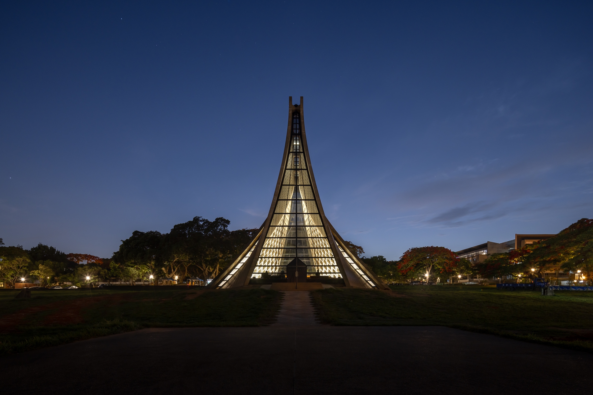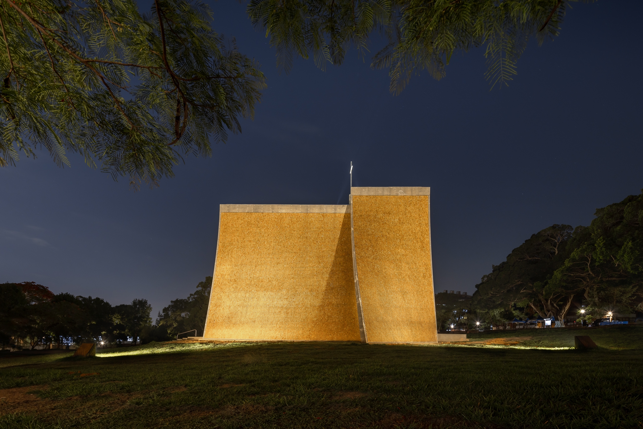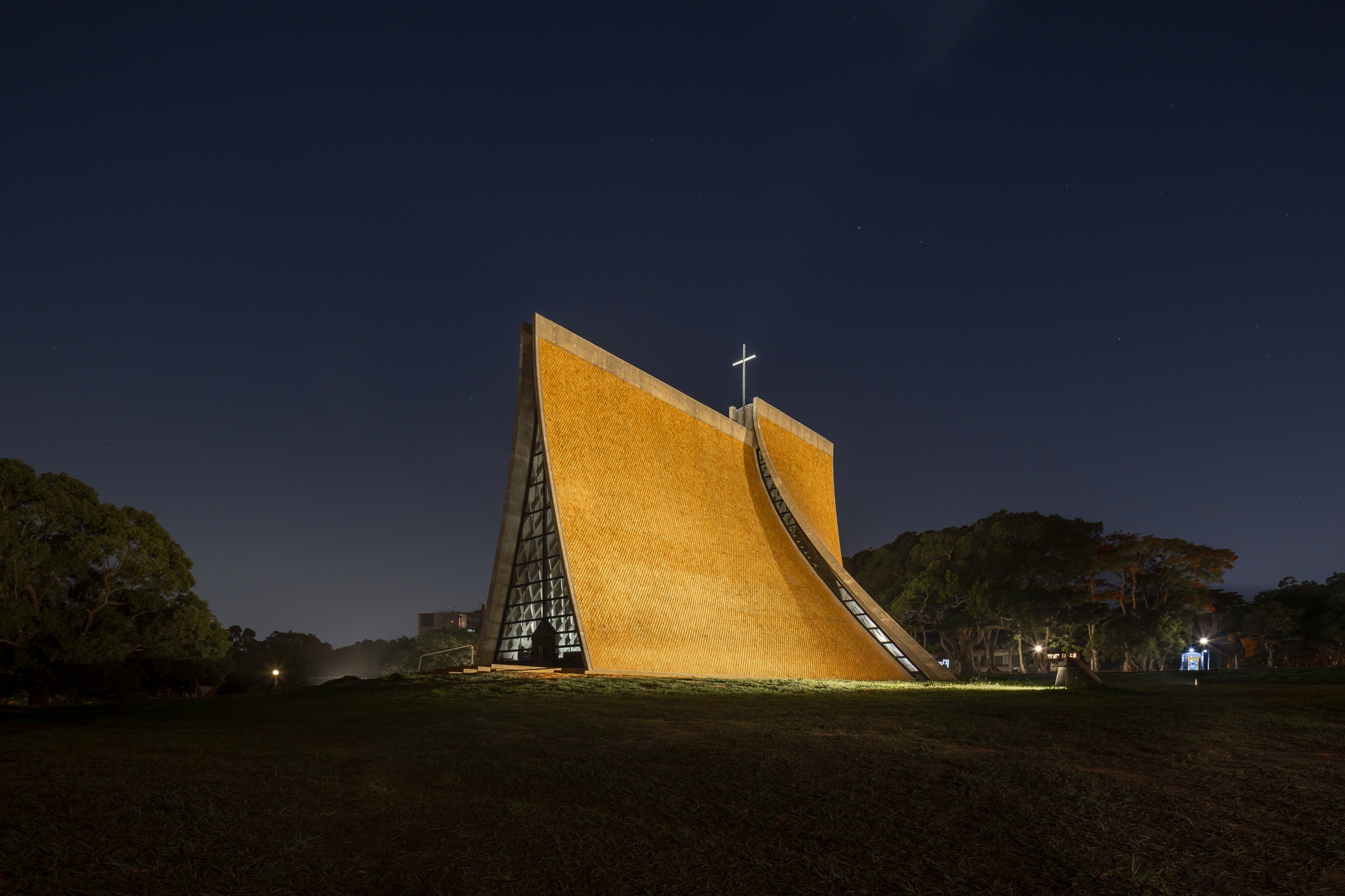 Entry DescriptionThis lighting design reinterprets the spatial and spiritual identity of an iconic chapel known for its curved architecture and symbolic presence. Through indirect illumination, the design reveals the fluidity of the chapel’s structural form, creating a dialogue between light, shadow, and sacred space. Interior lighting integrates seamlessly with hyperbolic surfaces, using walls as reflectors to distribute light evenly while preserving the purity of the architecture. Asymmetric optics minimize glare, enhancing visual comfort during worship and meditation. A dynamic control system allows flexible lighting scenes for rituals, contemplation, or public exhibitions. Exterior lighting reinforces the chapel’s nighttime presence within an open landscape. Wall-washing fixtures highlight the diamond-patterned tiles, while shielded beams reduce light spill. The cross atop the chapel is illuminated with balanced, linear lighting to maintain visual prominence and symbolic clarity. The overall concept respects the integrity of the original structure while introducing a modern, poetic lighting language that elevates both function and emotion. This project enhances the sacred atmosphere without distraction, allowing light to act as a quiet, reverent presence that evolves with time and use.