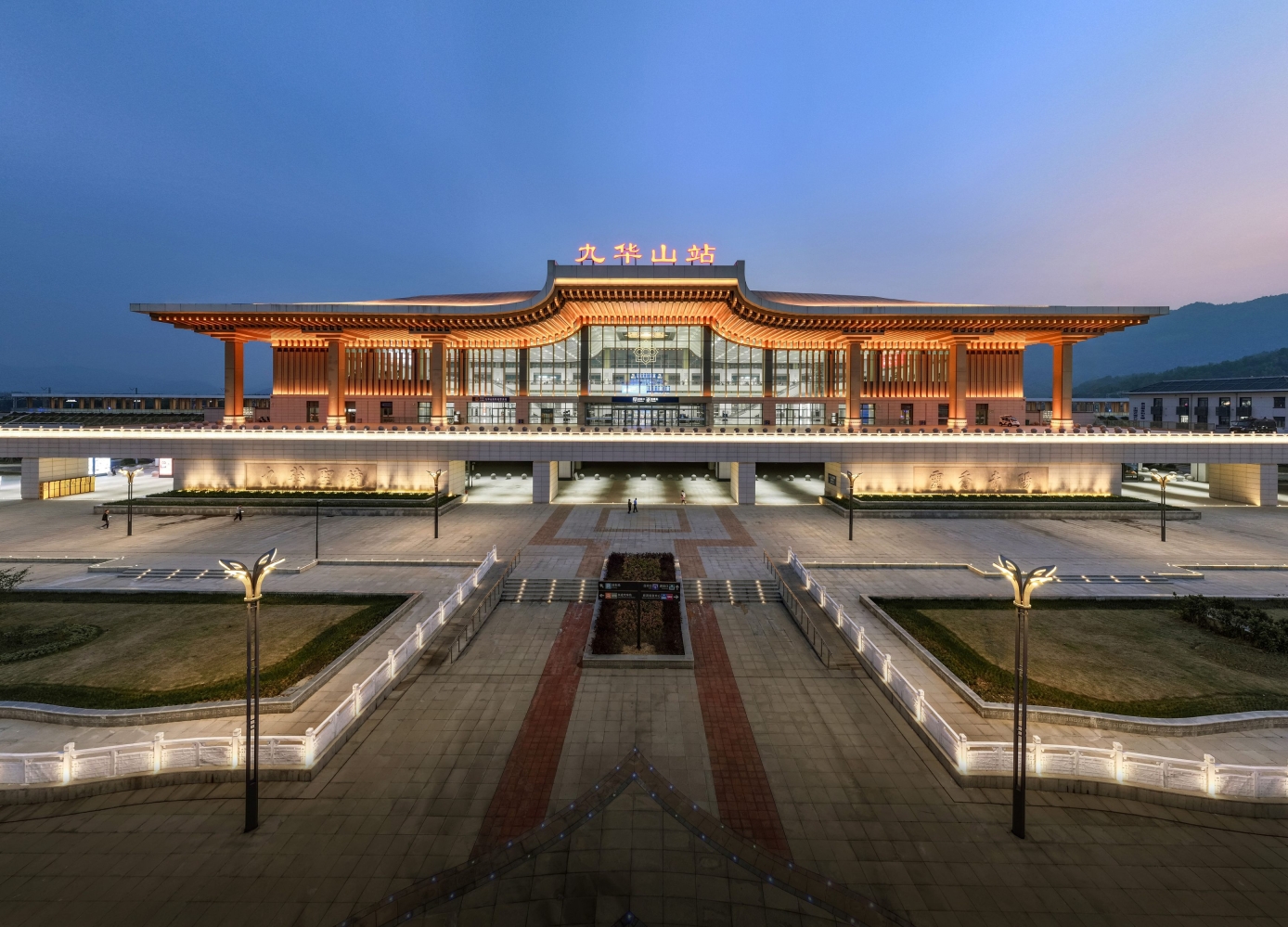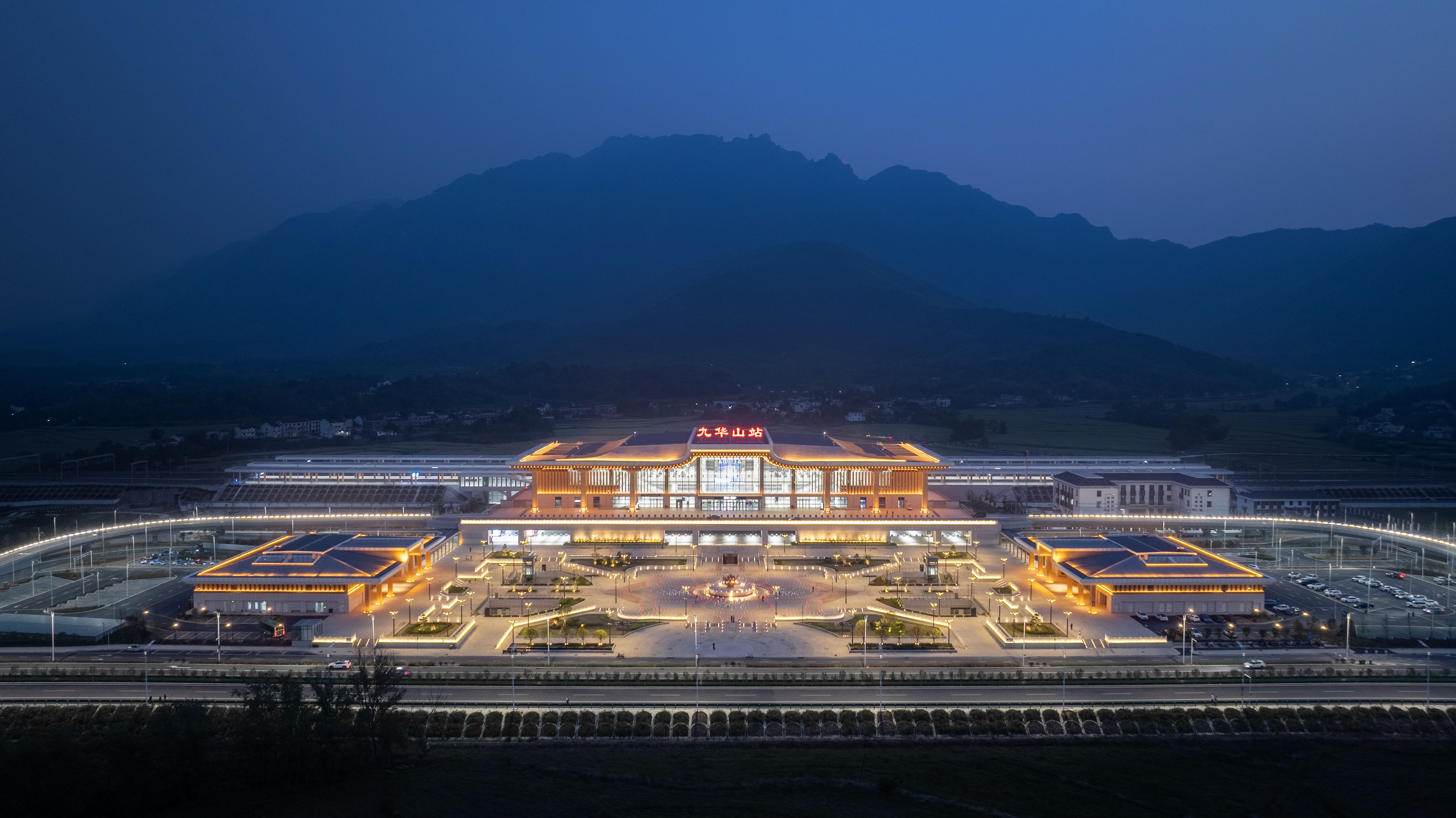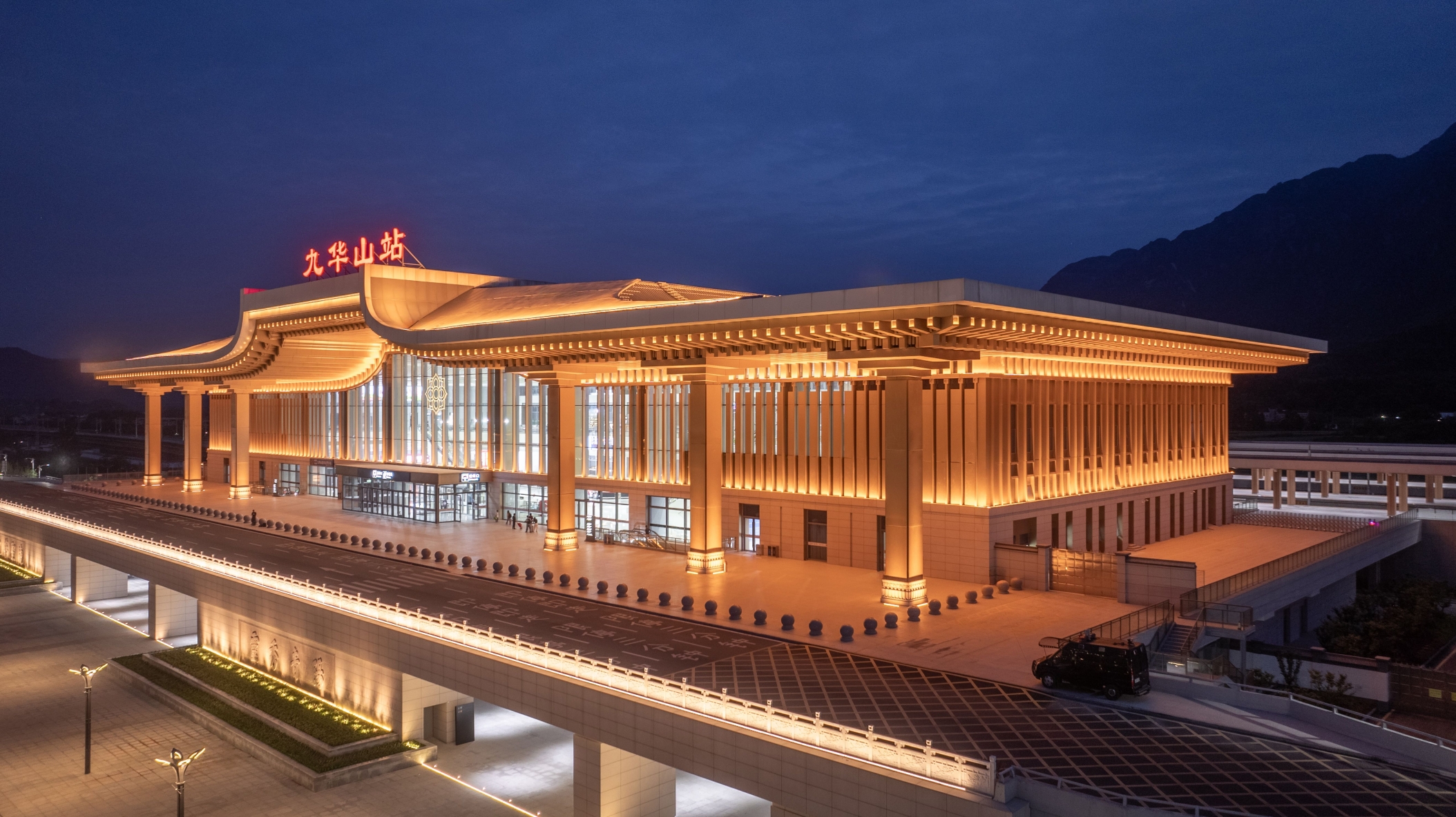 Entry DescriptionThe lighting design of Jiuhuashan Station, guided by the concept “Wisdom Unfolds, Light Enlightens Jiuhua,” integrates Buddhist culture and regional identity to create a spiritual and cultural gateway. The project includes the main station, supporting facilities, and the square, with lighting carefully layered to present Jiuhua’s unique nighttime image. The station building draws inspiration from Lotus Peak and the Moon Palace Hall, using golden aluminum panels and white stone to form a dignified Chinese-style gateway. Eaves are envisioned as scripture scrolls, illuminated with 2700K light and custom amber tones to express the Buddhist “Universal Radiance,” shaping an atmosphere of compassion and virtue.