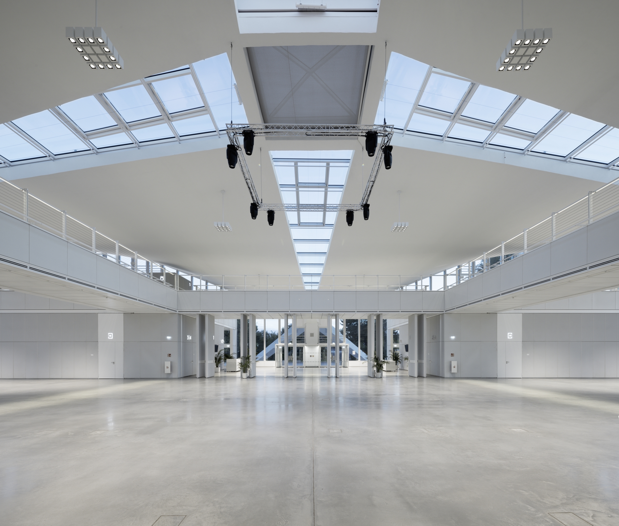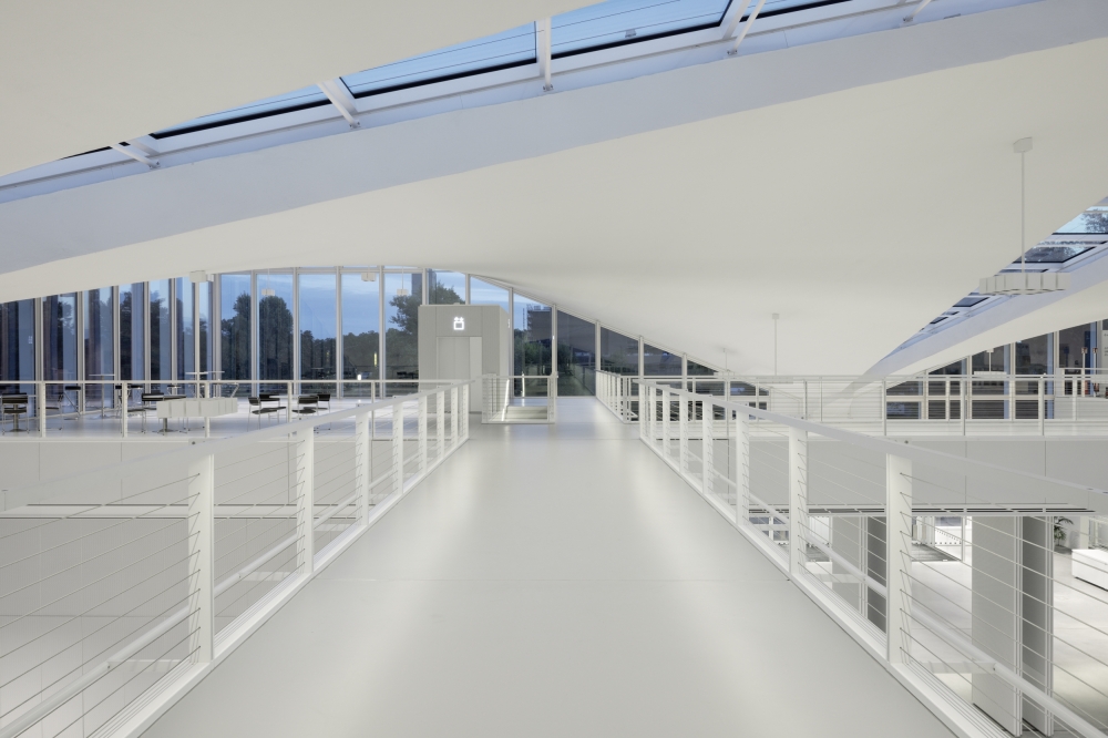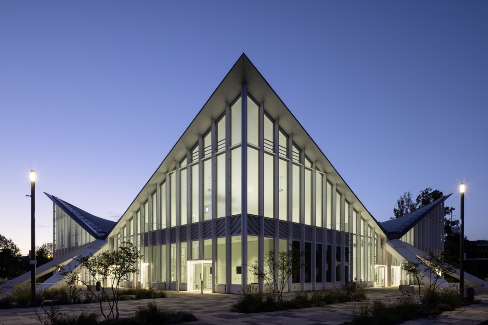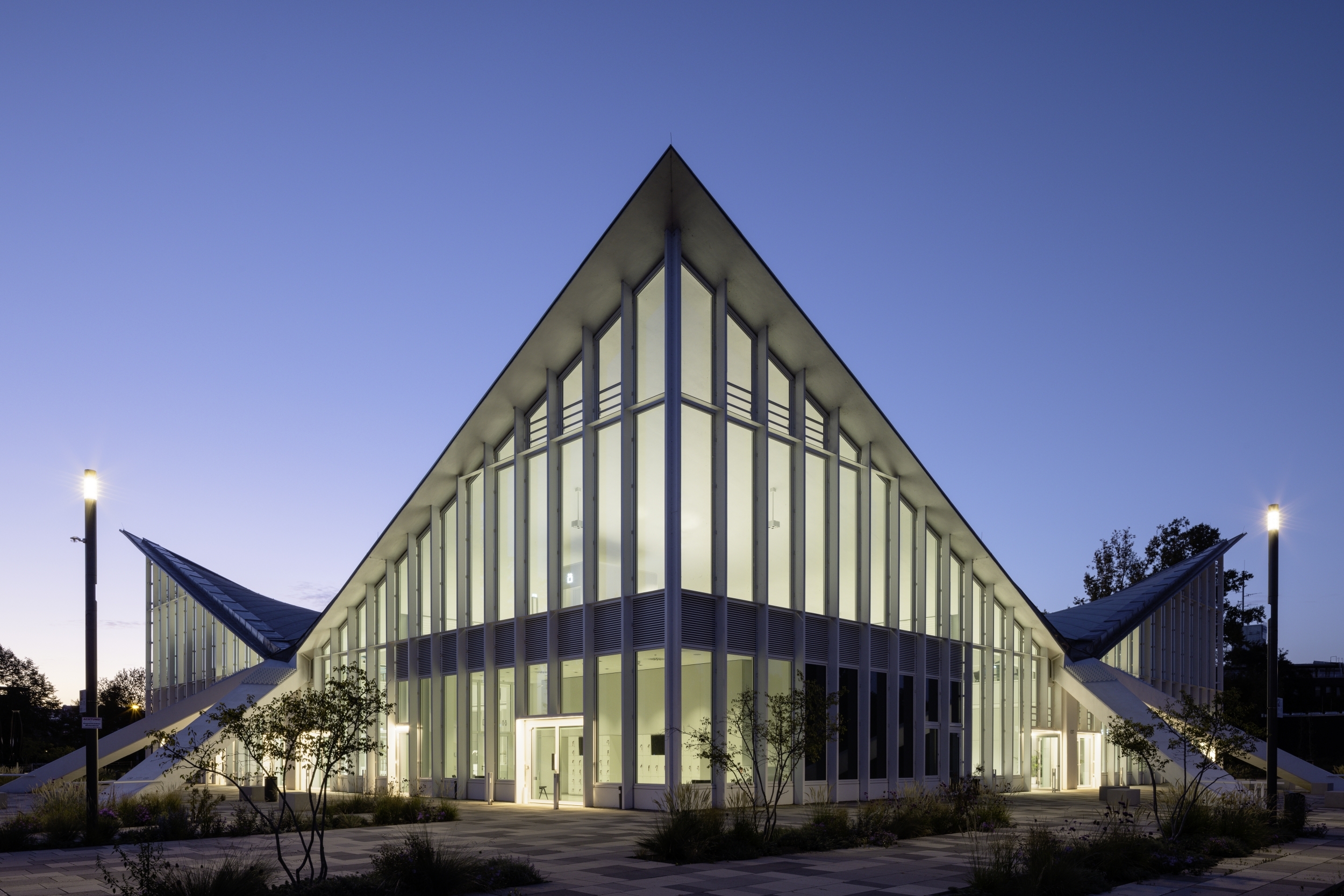 Sustainability ApproachThe glass façade and skylights provide plentiful daylight penetration into the Hyparschale. Because of this, artificial lighting is reduced and focused primarily on evening lighting scenes.