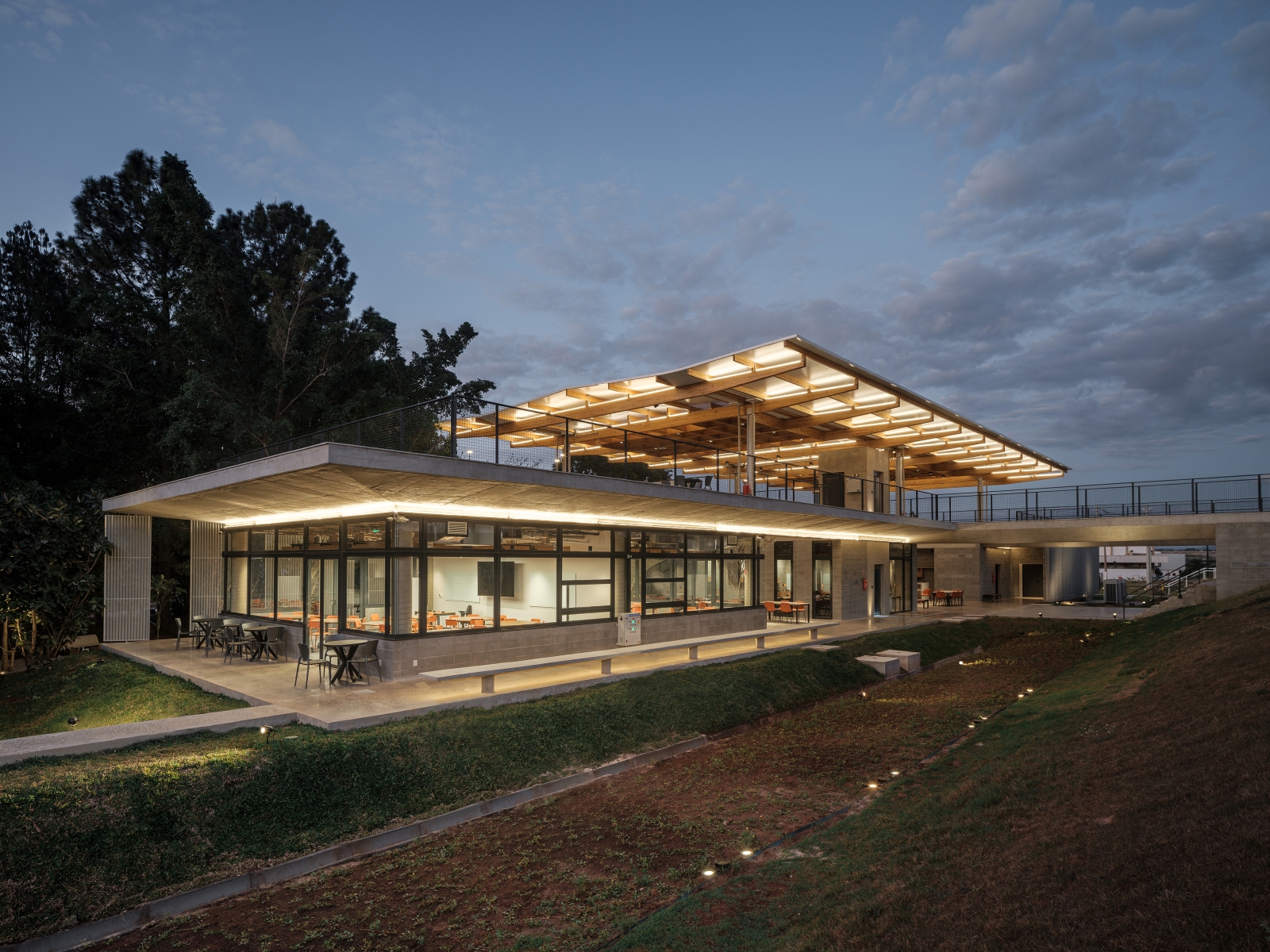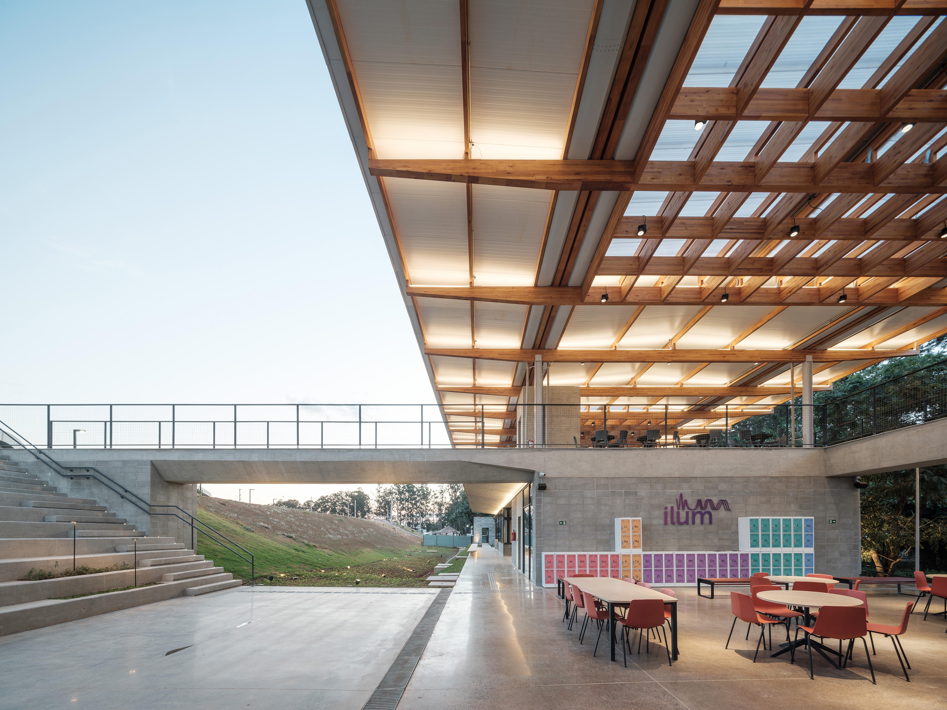 Entry DescriptionThe ILUM Student Life Center emerges with a collective spirit, opening itself to nature. It acts as a bridge between the CNPEM campus and Sirius — the National Synchrotron Light Laboratory.