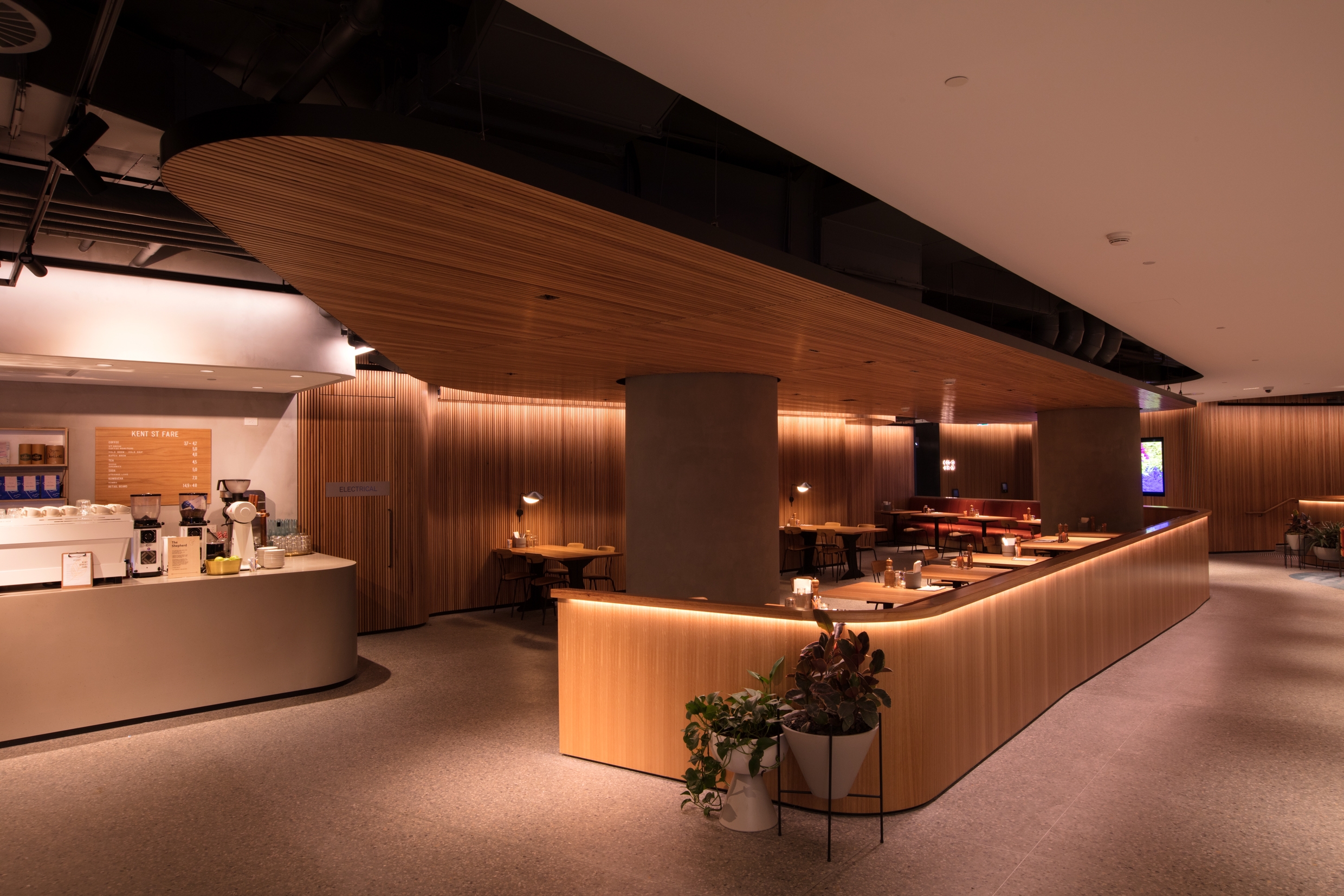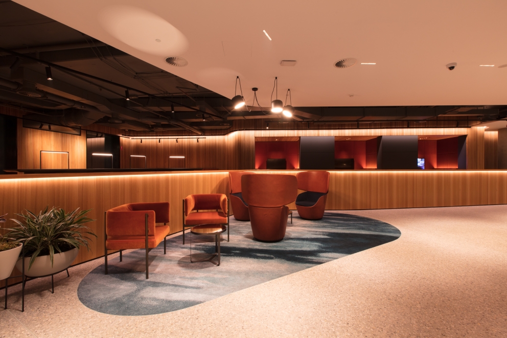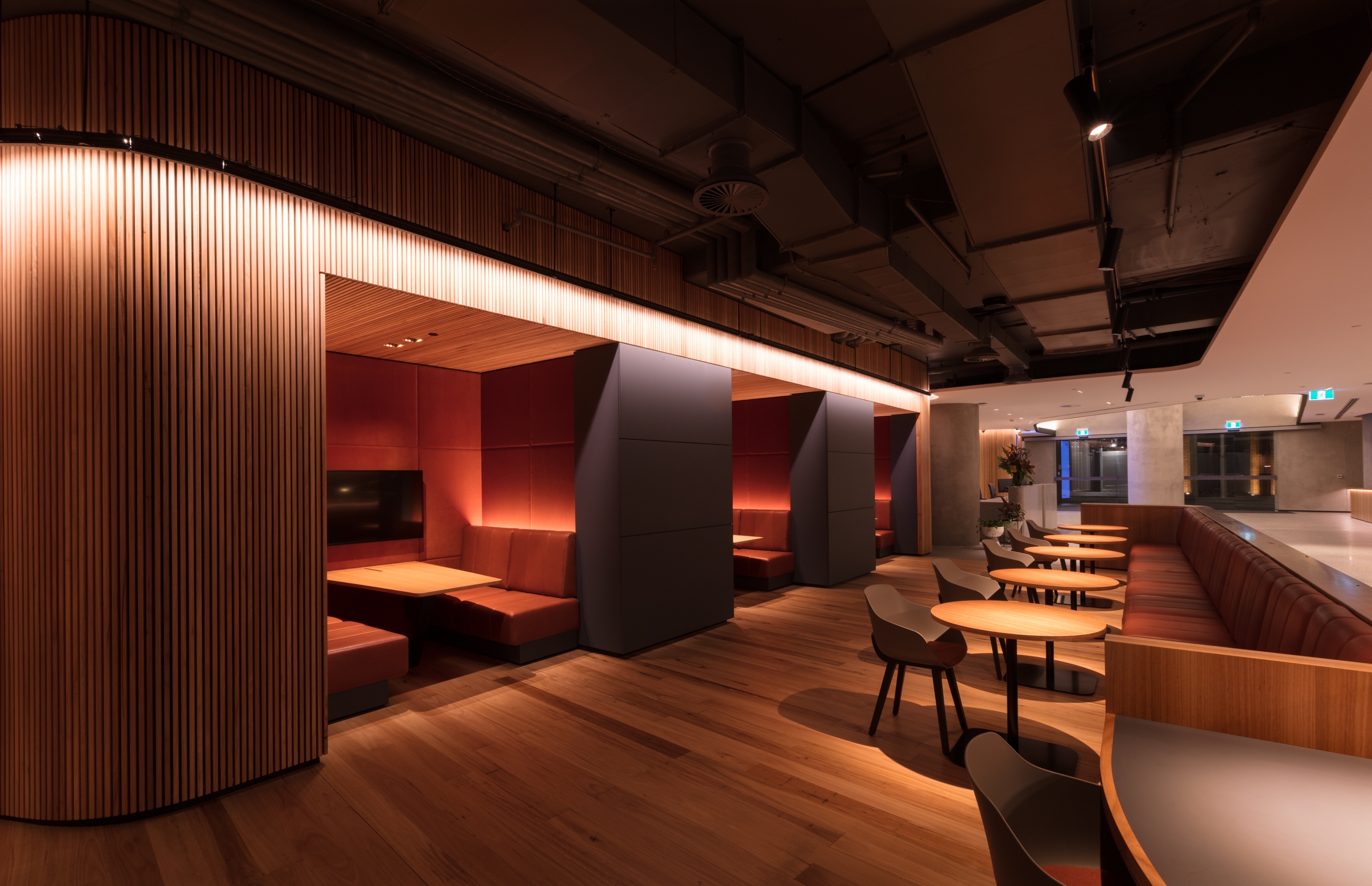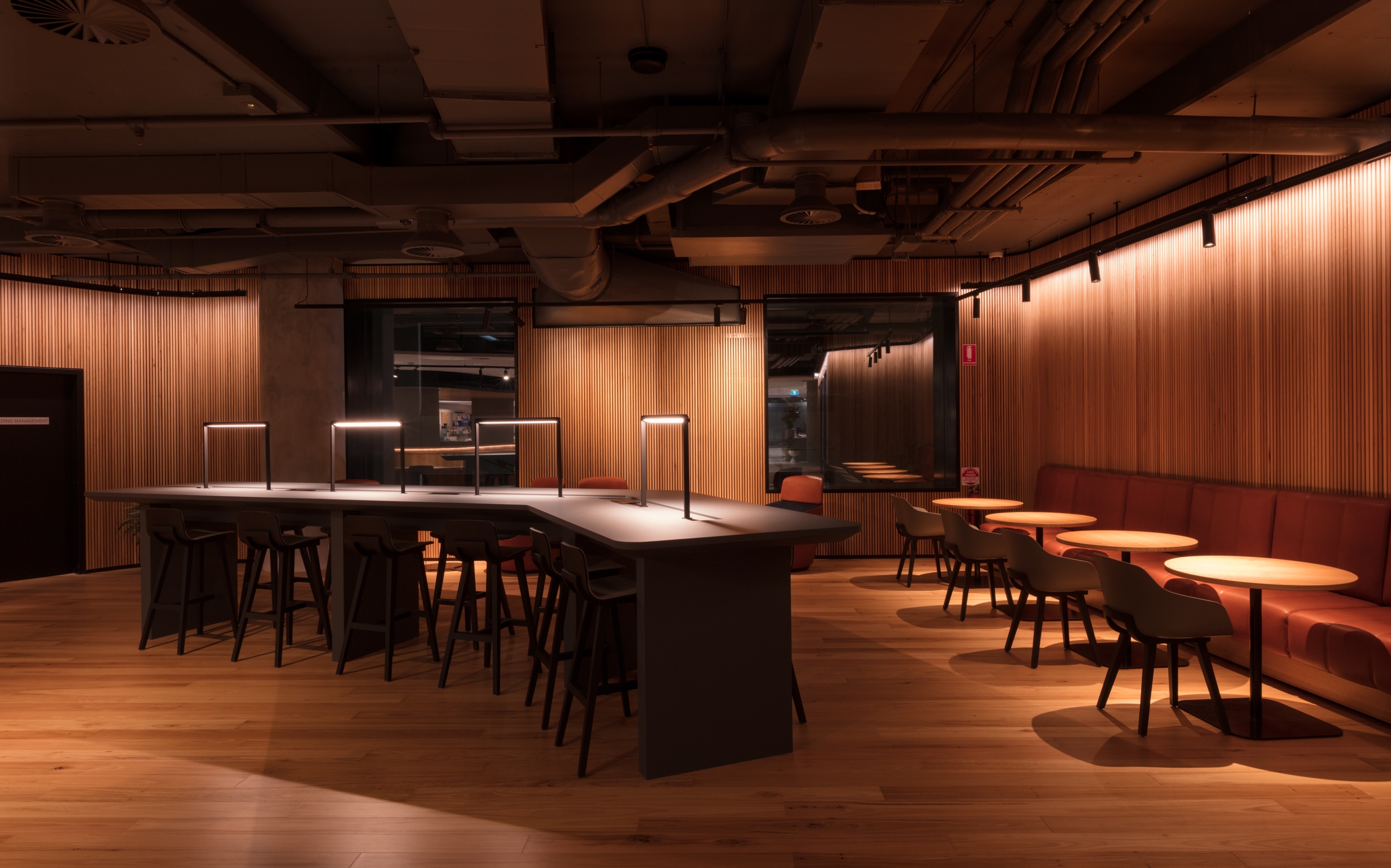 the lighting approach was tailored to each setting providing task specific lighting for dining, high tables and intimate meeting pods.
