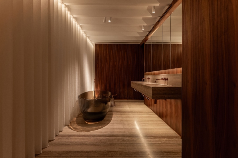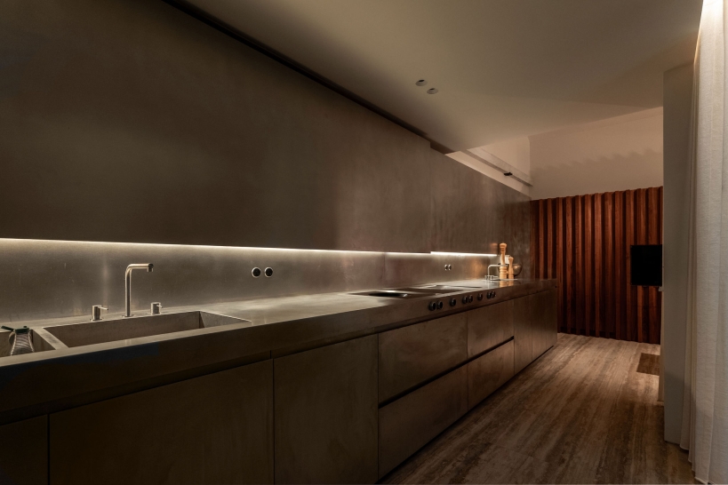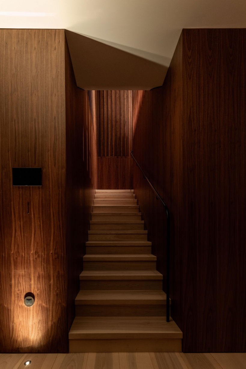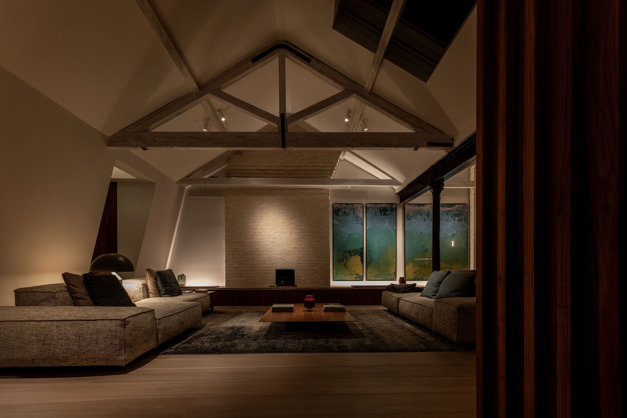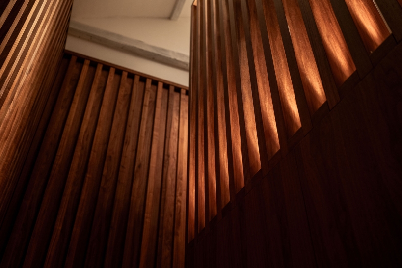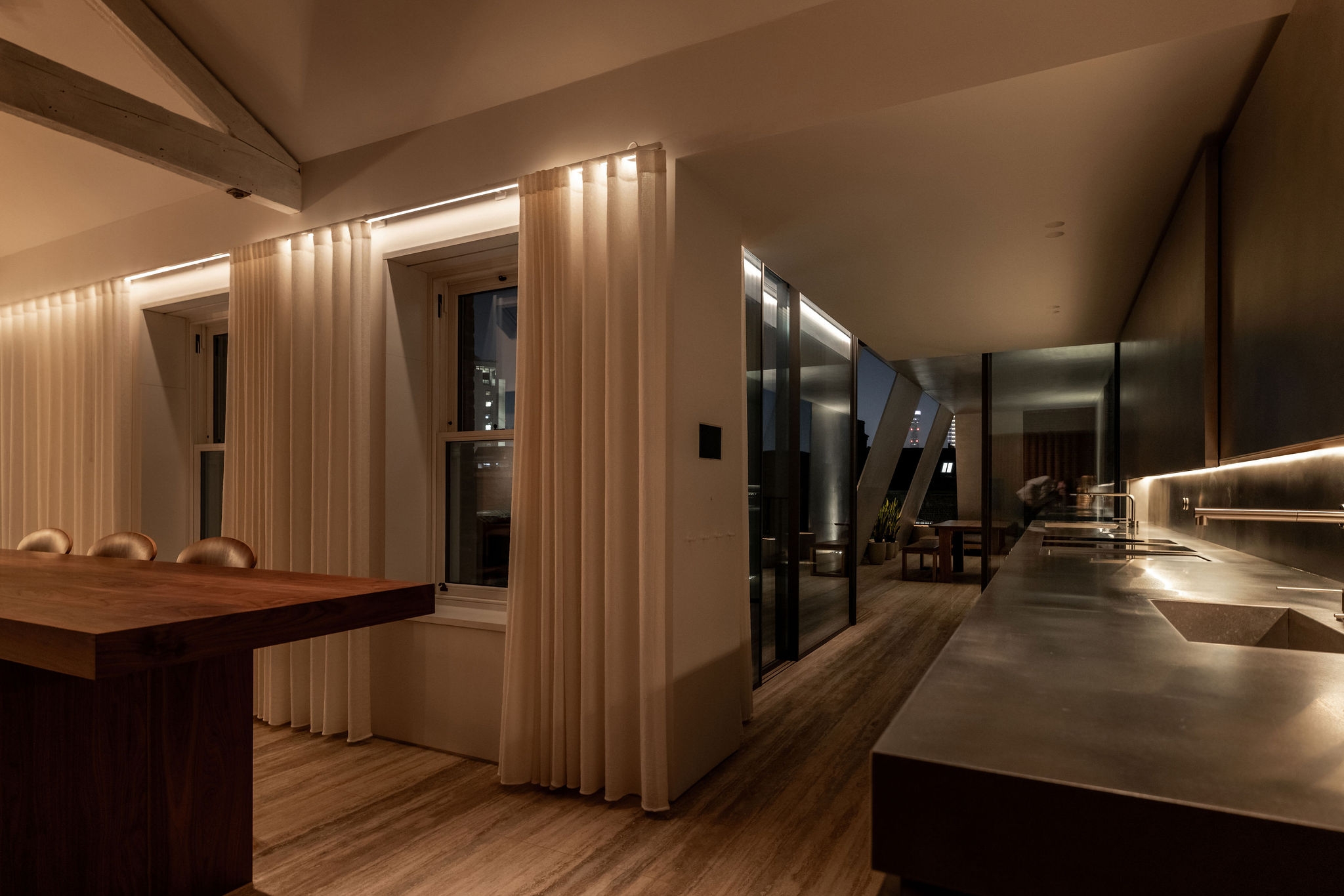 We sought to employ minimal detailing except for key elements, such as back lighting exposed shear fabric curtains, up lighting to timber slats in the main stairwell which provide a strong visual element upon entry and wash lighting to vertical surfaces, coupled with carefully positioned decorative luminaires ensuring a cosy ambience throughout the apartment.