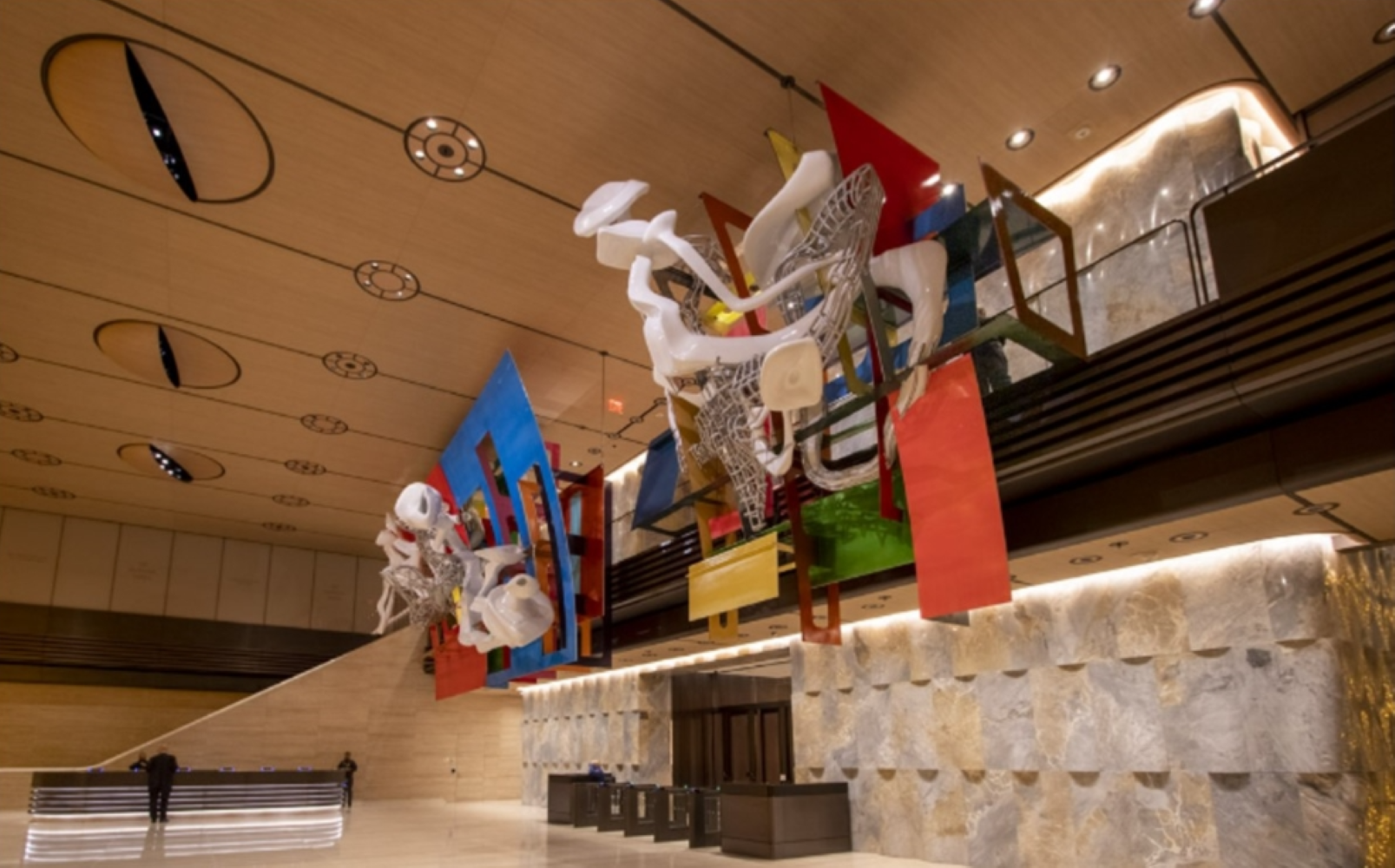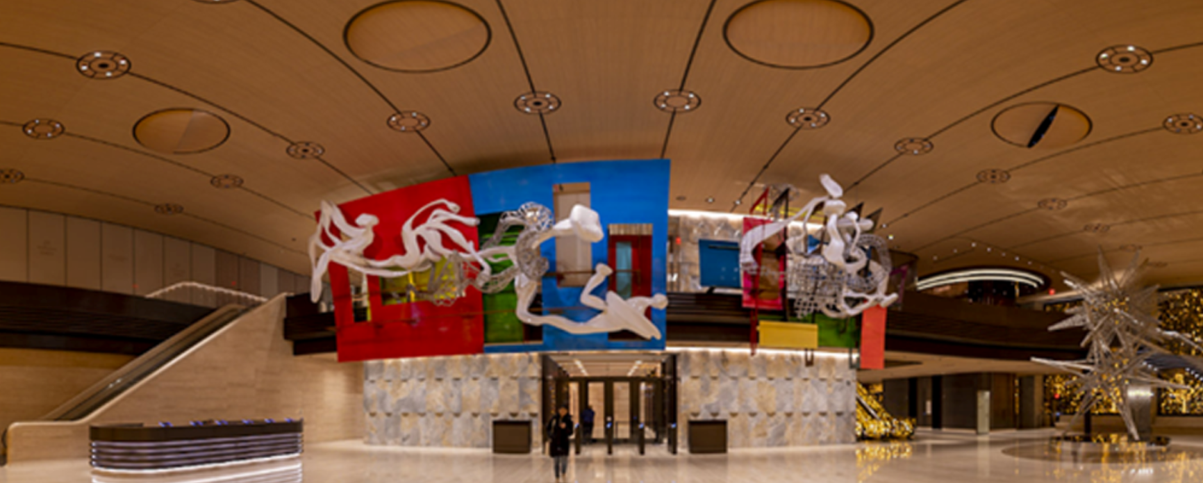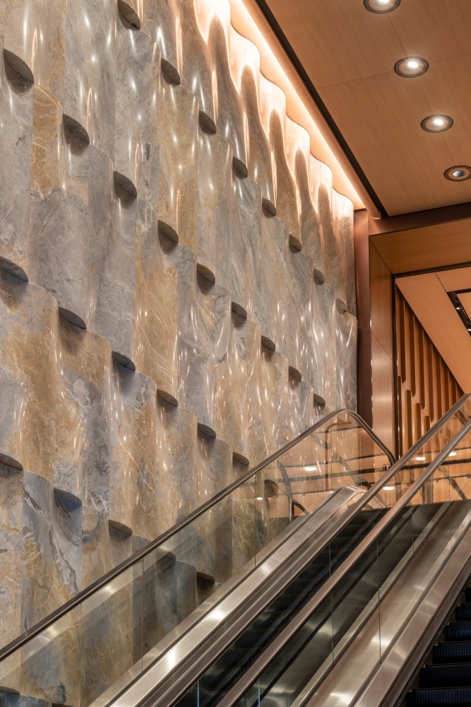Entry Description50 Hudson Yards, a new 78-story architectural landmark in New York, serves as a gateway to a vibrant new neighborhood. Beyond its structural grandeur lies a bustling nexus, seamlessly connected to retail and the subway. The vibrant public entrance lobby, adorned with two monumental Frank Stella sculptures, serves as a captivating prelude. Meticulously designed lighting accentuates the sculptures and complements the interior architecture, creating a cohesive composition. An additional lobby dedicated to BlackRock exudes timeless sophistication, providing a nuanced differentiation while maintaining continuity with the main entrance. Together, they embody architectural excellence and refine the narrative of this distinguished building.