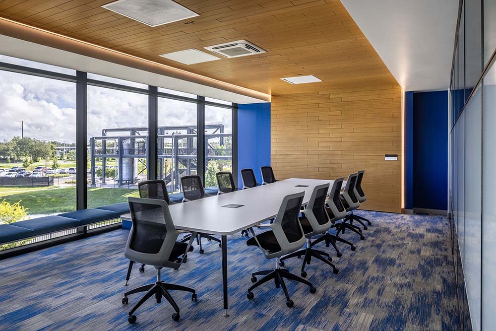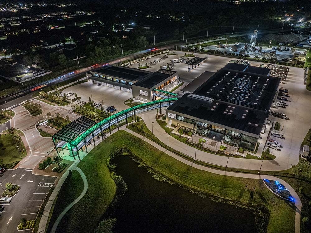 Sustainability ApproachThe project blends energy efficiency, innovative lighting, and community-focused environmental values. Challenges included creating a hospitality-inspired interior in an industrial space, complying with strict light trespass rules, and reinforcing the company’s energy identity. The exterior nods to the region’s citrus heritage, while dynamic lighting evokes the power of electricity. Visitors experience a sensory journey—from the warm glow of the Energy Pavilion to a color-shifting walkway and subtle in-grade fixtures. Inside, lighting enhances comfort and efficiency with power line-inspired chandeliers, low-glare downlights, acoustic panels, and daylight-responsive controls. Advanced systems enable multi-scene presets, daylight harvesting, and adaptive dimming. Energy savings include: Warehouse Interior 61.8%, Exterior 36.9%; Fleet Building Interior 58.7%, Exterior 29% below baseline.