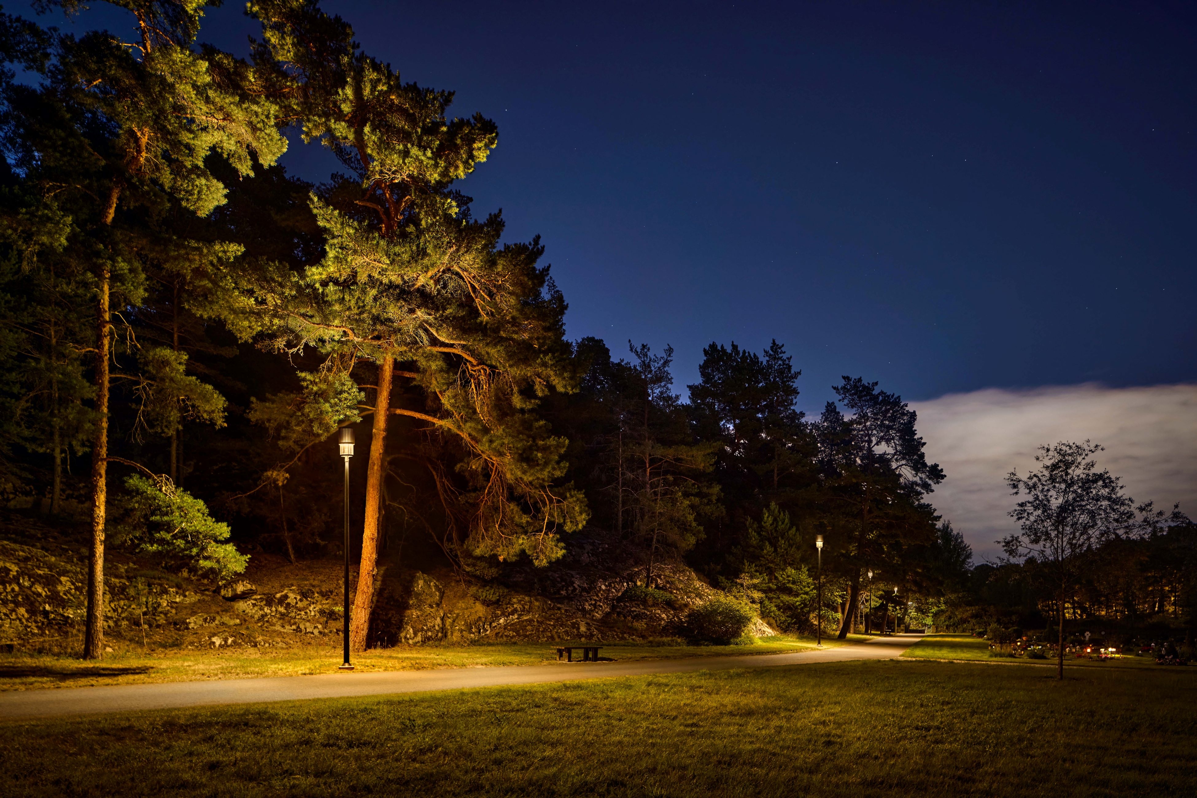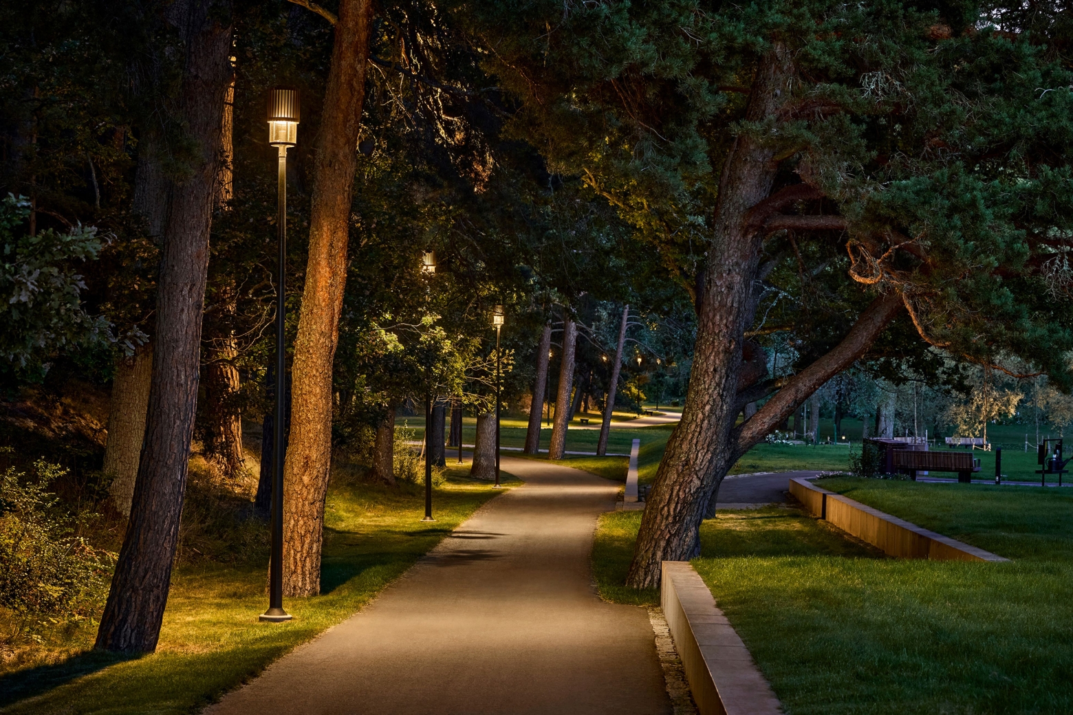 Sustainability ApproachTo ensure a sustainable revitalization, a heritage impact assessment was carried out in close collaboration between architects, conservationists and lighting designers. Robust and attractive materials that stand the test of time have been applied throughout. Unshielded fixtures had previously proved inefficient, disruptive of the night sky and glaring to the human eye. The new lighting plan was implemented with a carefully considered placement of luminaires in relation to the areas to be illuminated, resulting both in a significantly lower usage and improved visual comfort compared to the existing facility. To protect nocturnal animals and preserve the natural darkness, portions of the lighting is turned off during parts of the night. Some areas have been left unlit and others, such as selected pine trees, have been accentuated with low light levels for the purpose of orientation.