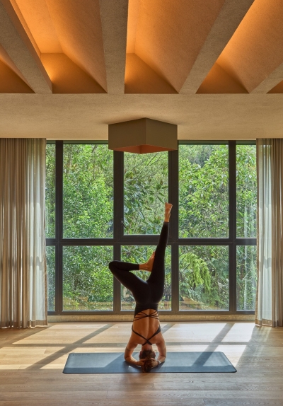 Inside, light is organically integrated into the architecture, with wooden beams softly backlit to evoke natural daylight in tone, direction, and intensity. Lighting scenes are programmable and adaptive, designed to support each phase of the yoga practice—from activation to deep meditation. Color selections were based on psychological impact, enhancing a sense of balance, introspection, and harmony.