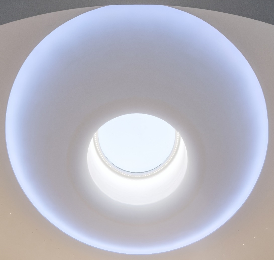 Entry DescriptionTIANFU JIANGXIN CREATIVE INDUSTRIAL PARK is located in the core economic zone of Qingyang Headquarters in Chengdu, China, functioning as a complex integrating offices, commerce, hotels, sports centers and art venues. With the core concept of “Sharing, Interaction and Openness”, the project is dedicated to creating a modern community hub that promotes vibrant office environments and healthy lifestyles, providing dynamic social and work spaces for the surrounding area. Our "functional aesthetics" lighting design approach creates harmoniously rationalized spatial experiences through quality light environments. The reception lobby's standout feature is a 7-meter-diameter minimalist skylight inspired by the oculus of Rome's Pantheon. This circular aperture contrasts with the cubic architecture, symbolizing the Chinese philosophical "Heaven’s Roundness and Earth’s Squareness" to reflect corporate inclusivity and design excellence. Natural light generates a divine luminous field with dancing shadows. The cosmic-themed design incorporates stellar trajectories, planetary atmospheres, and celestial phenomena – translating corporate culture and ideal living aspirations into luminous expressions. Dubbed "The Form of Light," it evokes emotional resonance through immersive cosmic spectacles, as poetic verses capture chromatic celestial radiance.